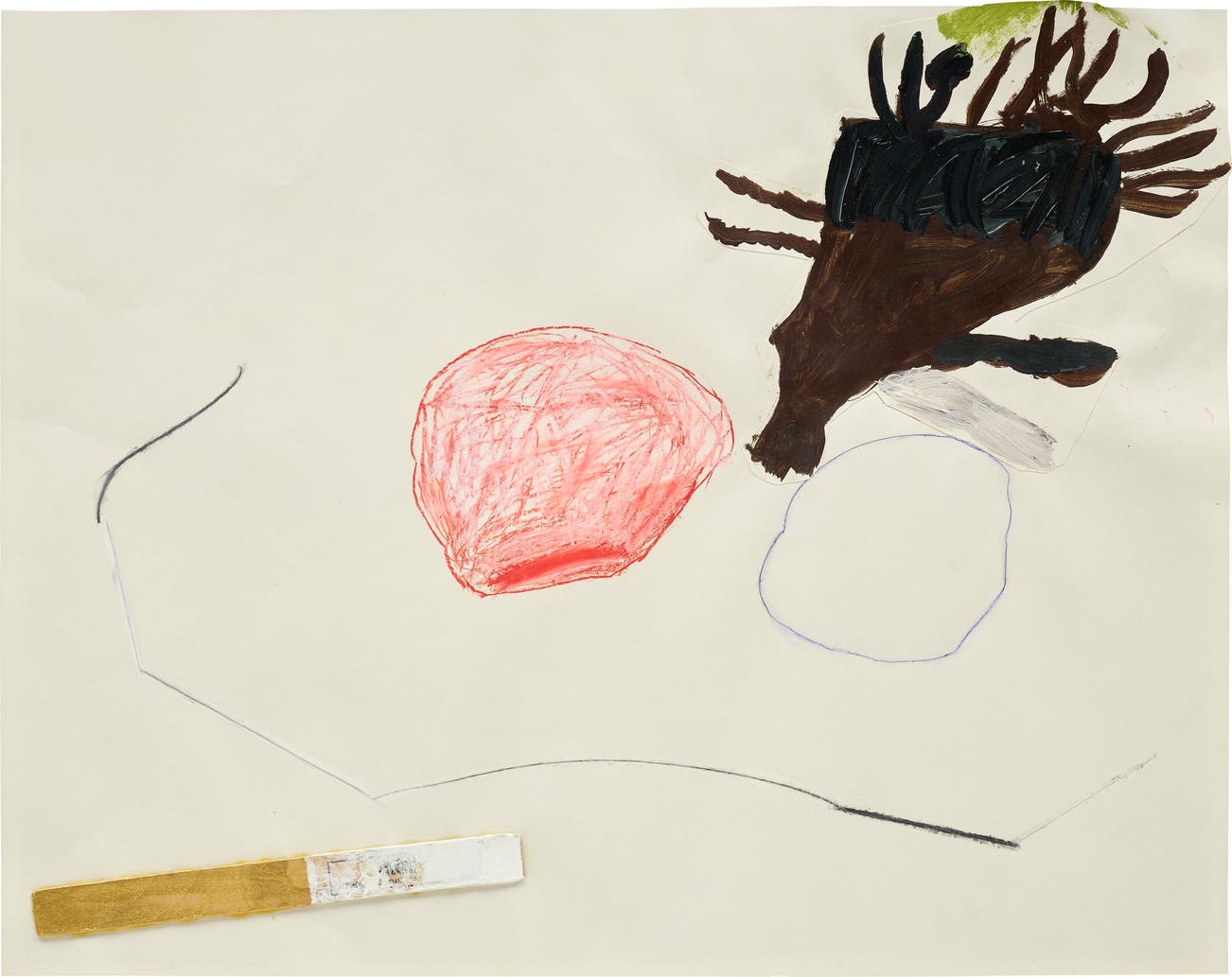 acrylic, ink, grease pencil and wood collage on paper