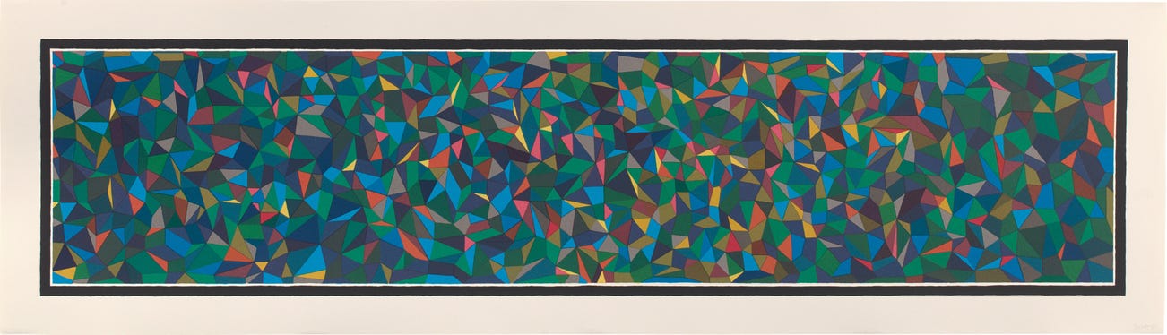 Using a prescription to direct the creation of a work, the artist’s hand subordinated to the artist's thoughts, in direct contrast to the Abstract Expressionist movement earlier in the century. Actions, forms and adjectives were broken down into terms, serially repeated and reconfigured: grids, lines, shapes, color, directions and starting points are several examples. These directives and constructs fueled an influential career of vast variety, subtlety and progression.