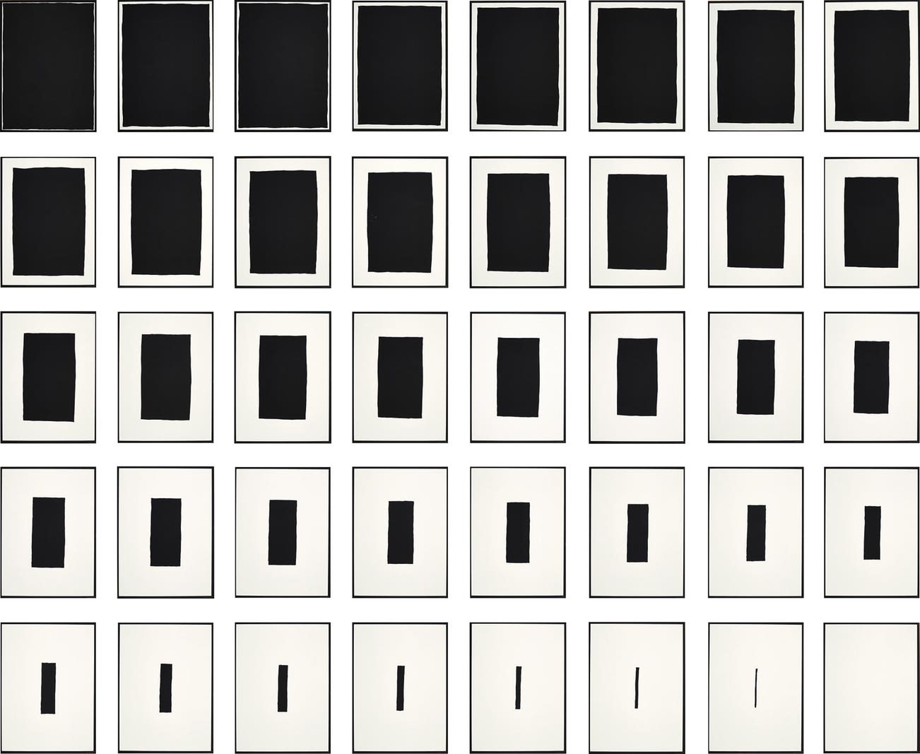 Using a prescription to direct the creation of a work, the artist’s hand subordinated to the artist's thoughts, in direct contrast to the Abstract Expressionist movement earlier in the century. Actions, forms and adjectives were broken down into terms, serially repeated and reconfigured: grids, lines, shapes, color, directions and starting points are several examples. These directives and constructs fueled an influential career of vast variety, subtlety and progression.