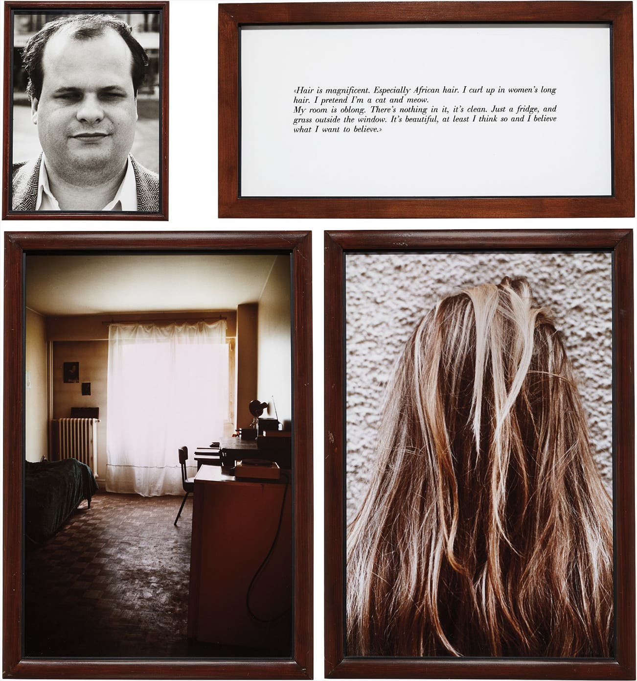The complete set of four elements, including two chromogenic prints in colors, one gelatin silver print and one text panel, the full sheets,