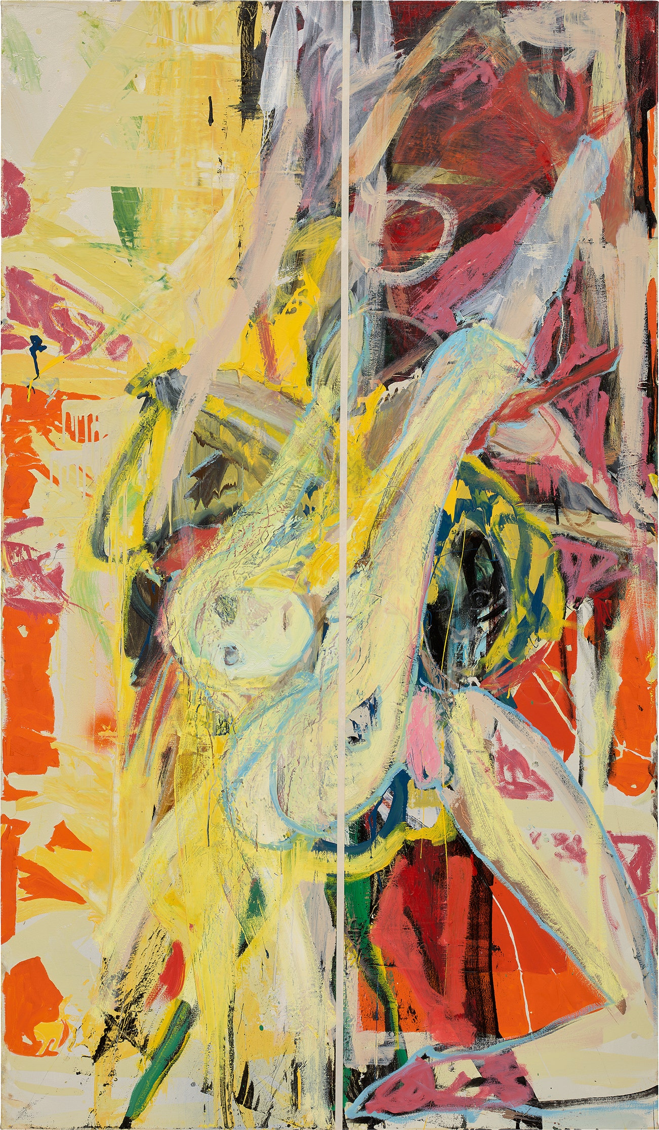 acrylic, spray paint, gesso, oil and tape on canvas