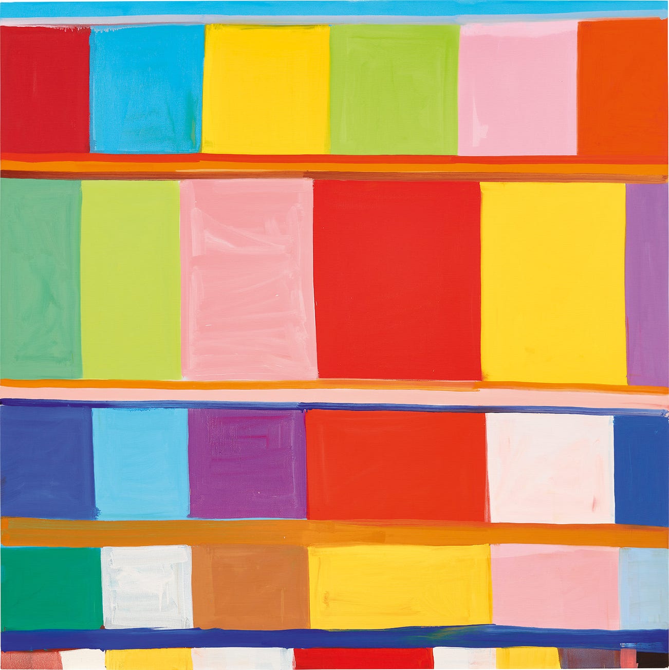 As Lauren Haynes, curator of Whitney’s solo show at the Studio Museum in 2015, aptly wrote, “Whitney’s work interrogates the connections among colors, how they lead to and away from one another, what memories they are associated with…Whitney’s colors take on lives of their own. They evoke memory and nostalgia. This orange takes you back to your favorite childhood t-shirt; that blue reminds you of your grandmother’s kitchen. Whitney’s paintings remind us, on a universal scale, of the ability of color to trigger feelings and sensations.”