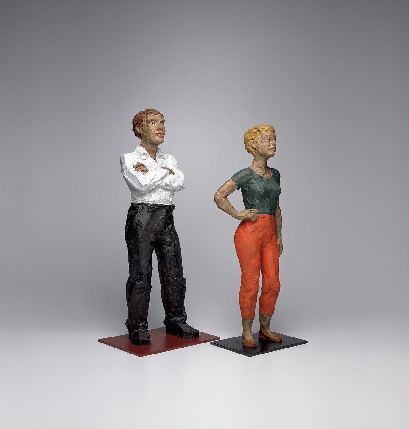 Man in White Shirt; and Woman in Orange Pants with Hand on Hip