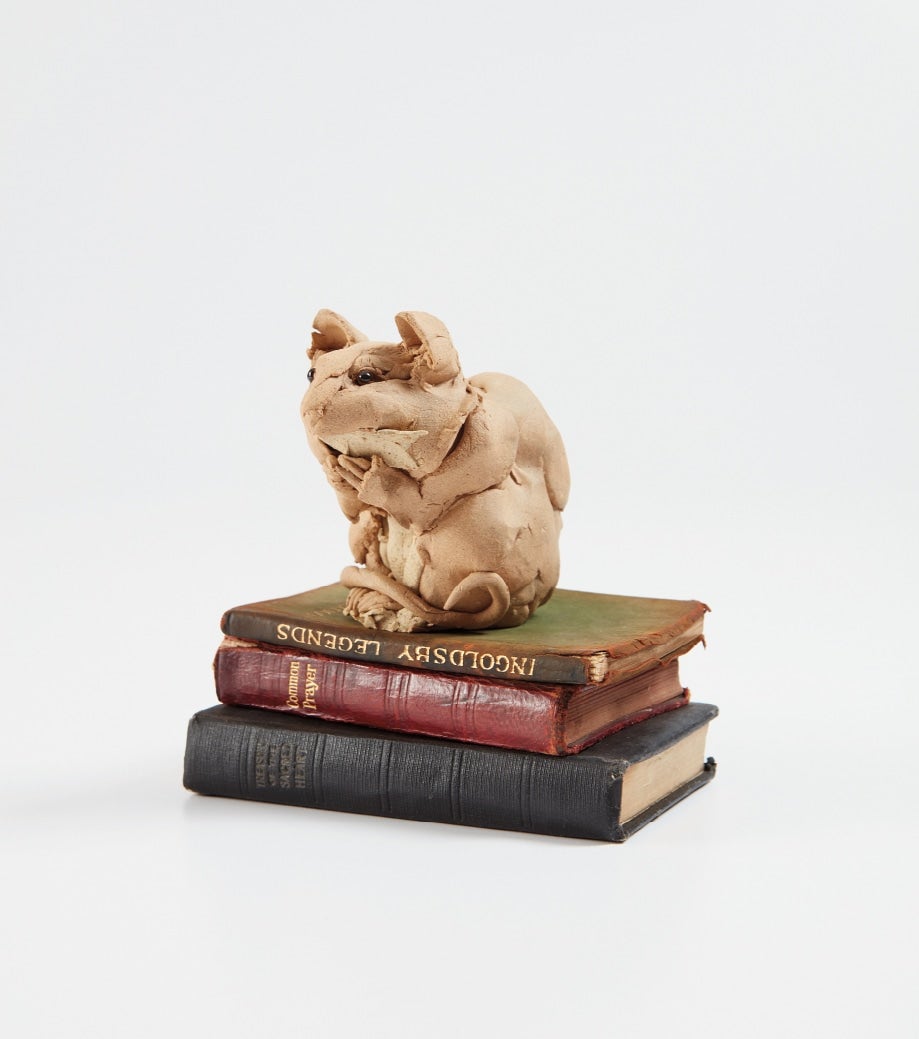 rich toasted stoneware and books, in 4 parts