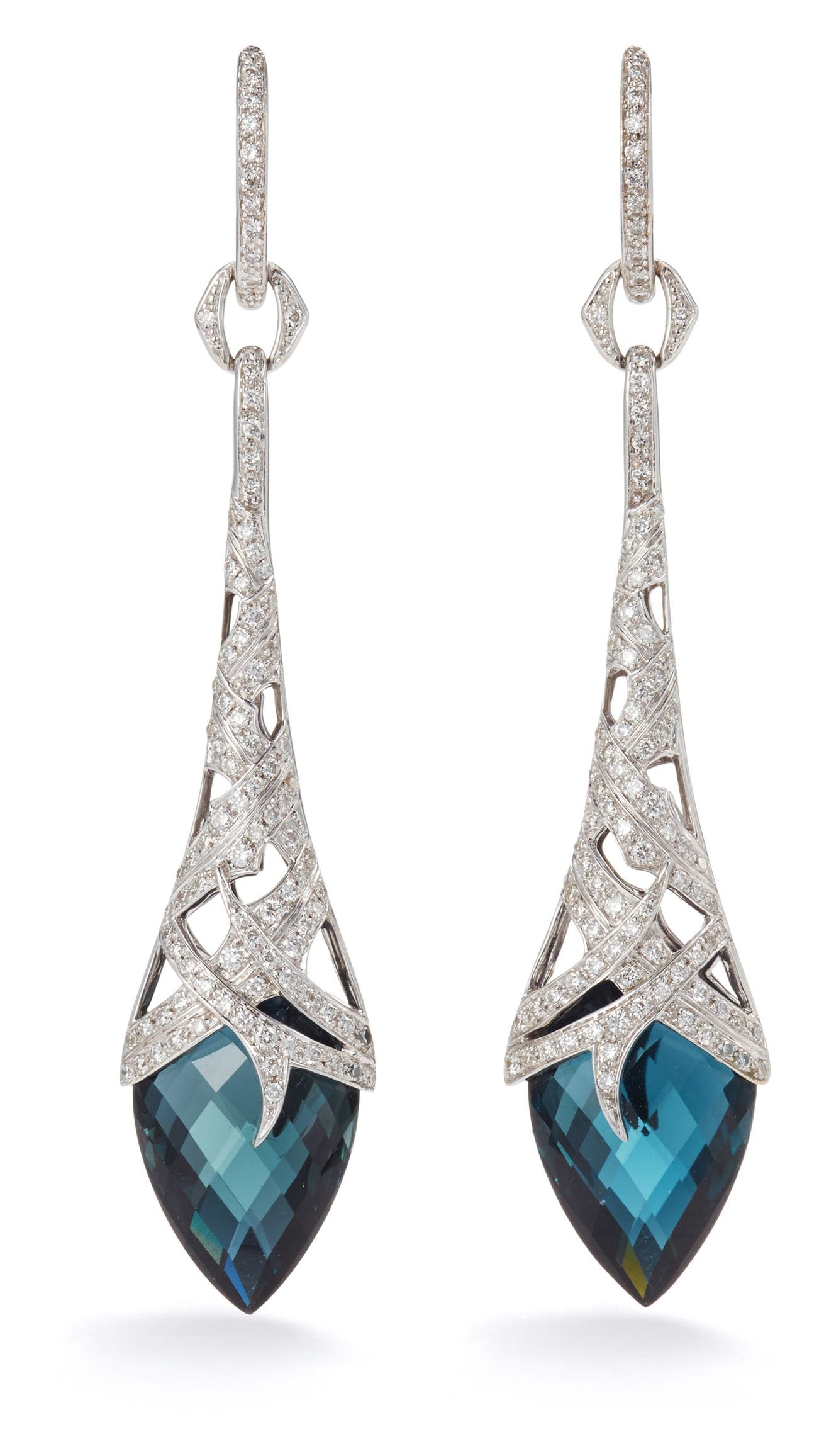 A Pair of Blue Topaz and Diamond 'Thorn' Earrings