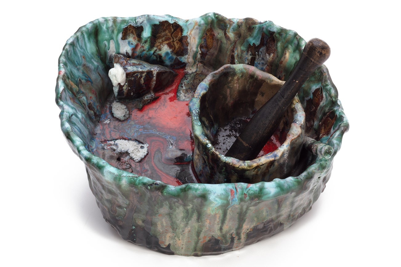 glazed ceramic and bronze, in 2 parts