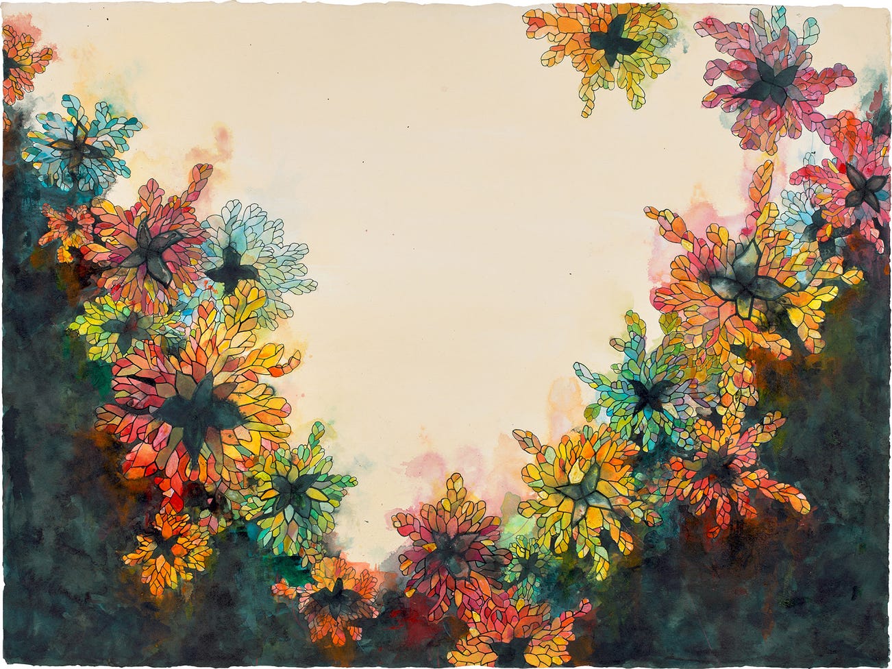 acrylic, ink and colored pencil on paper