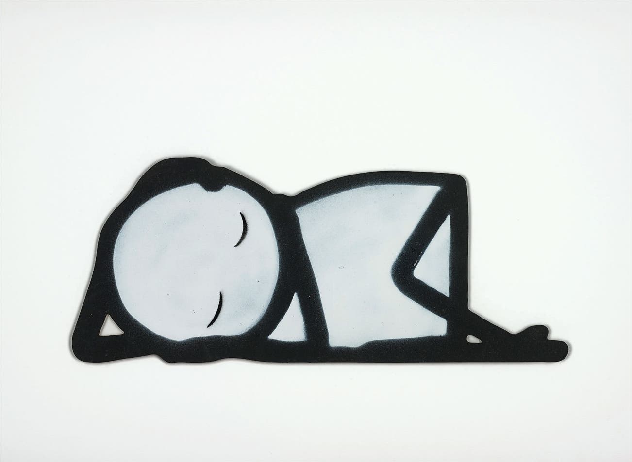 Stencil spraypaint in black and white on MDF cut-out.