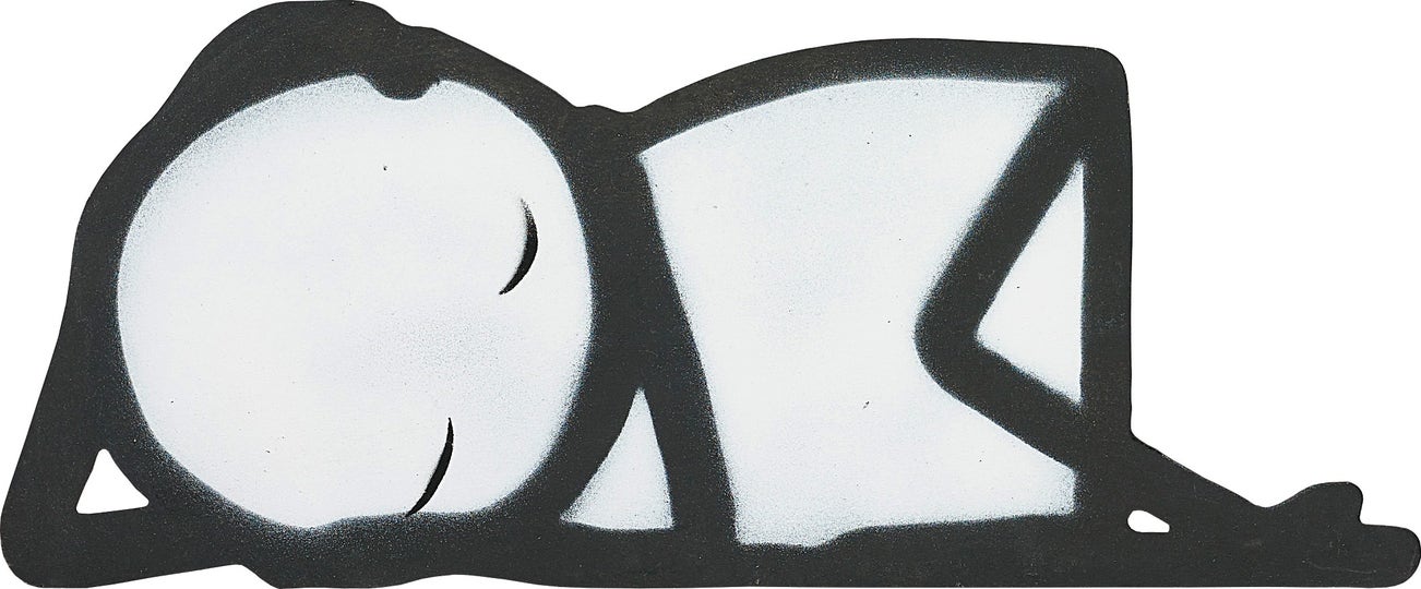 Stencil spraypaint in black and white on MDF cut-out.