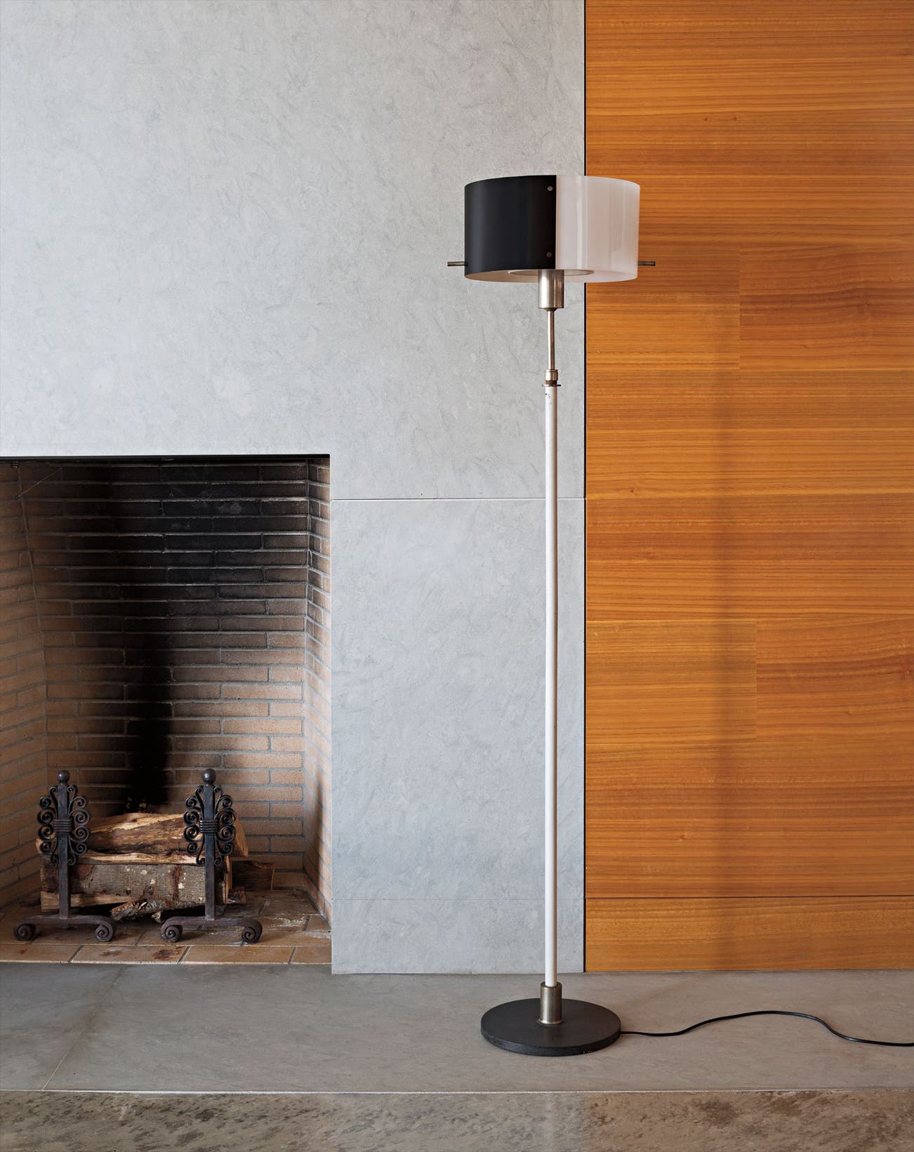 Acrylic, painted aluminum, nickel-plated brass, painted steel.