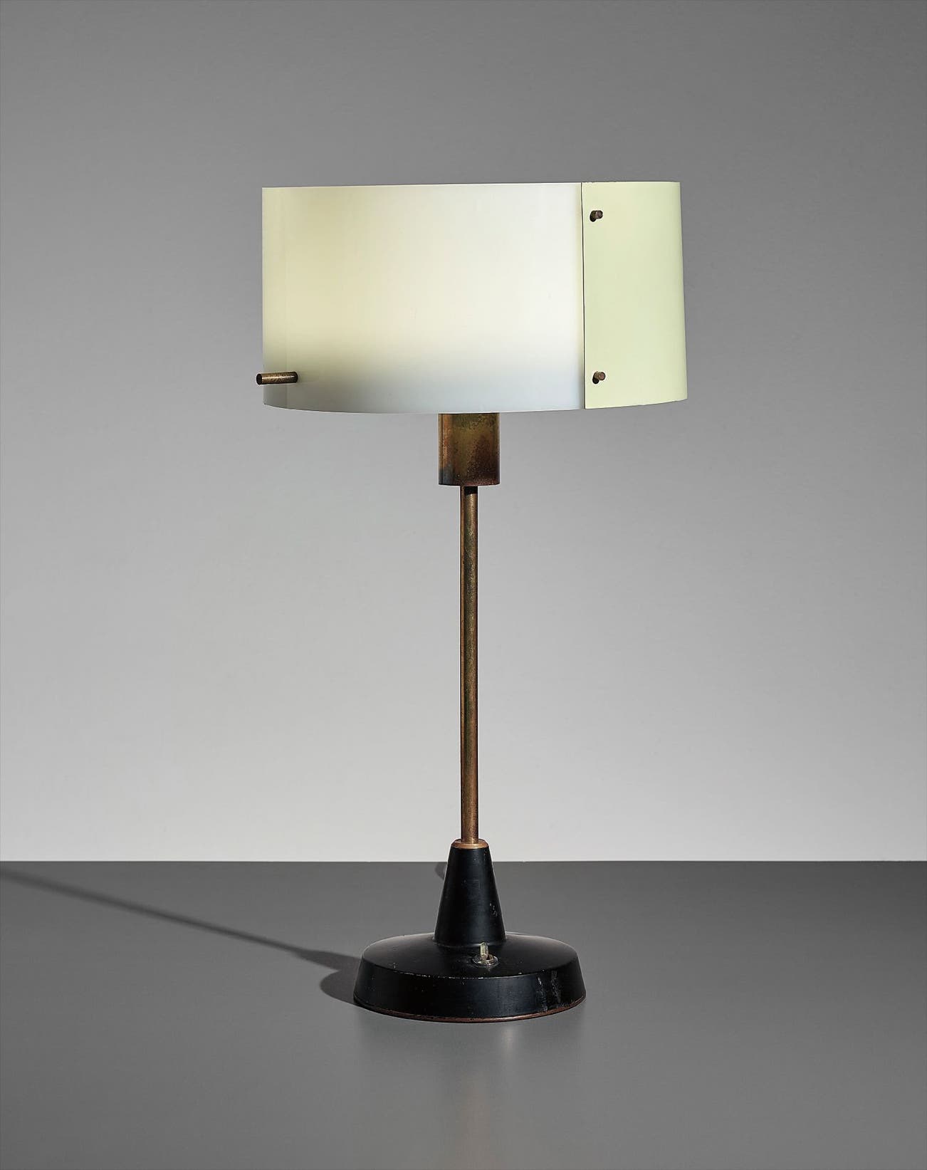 Manufactured by Stilnovo, Milan, Italy. Interior of shade with manufacturer's printed label MILANO/STILNOVO/ITALY.