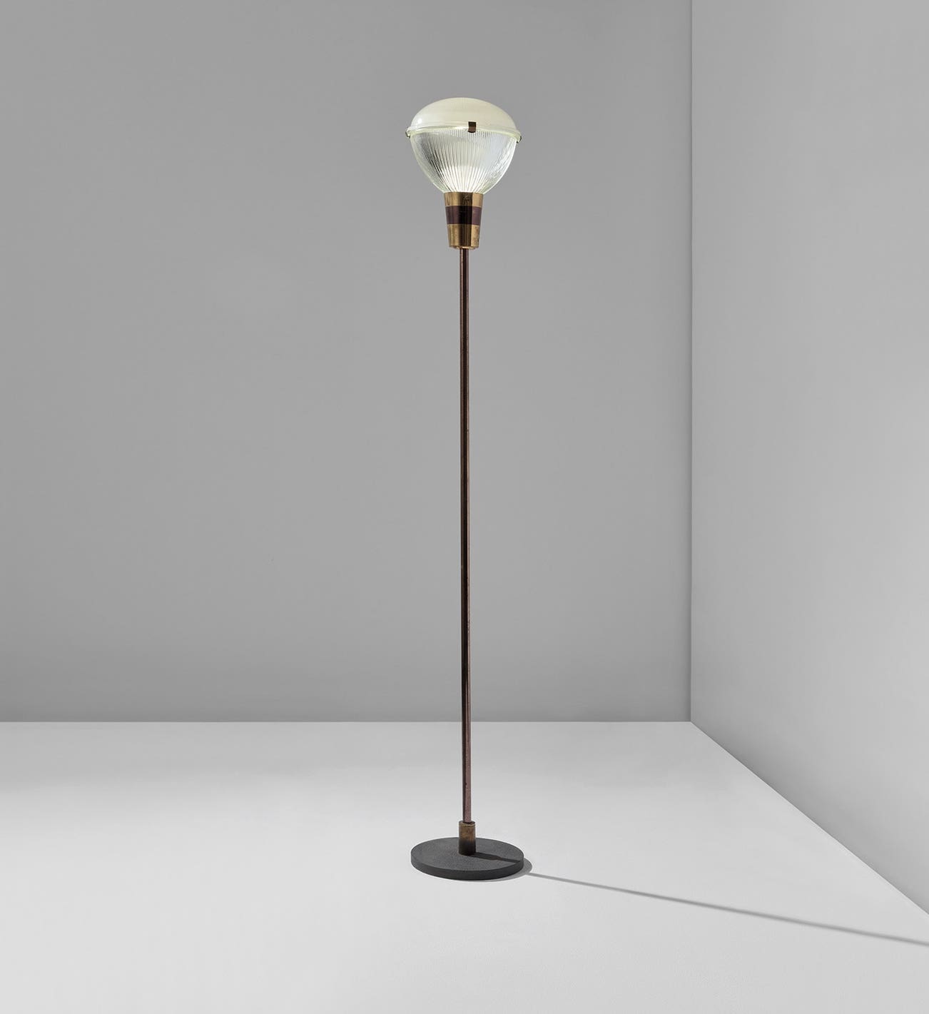 Manufactured by Stilnovo, Milan, Italy. Interior of shade with manufacturer's label printed MILANO/STILNOVO/ITALY.