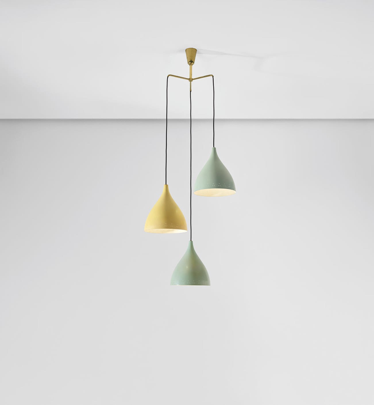 Painted aluminium, brass, rubber cord.