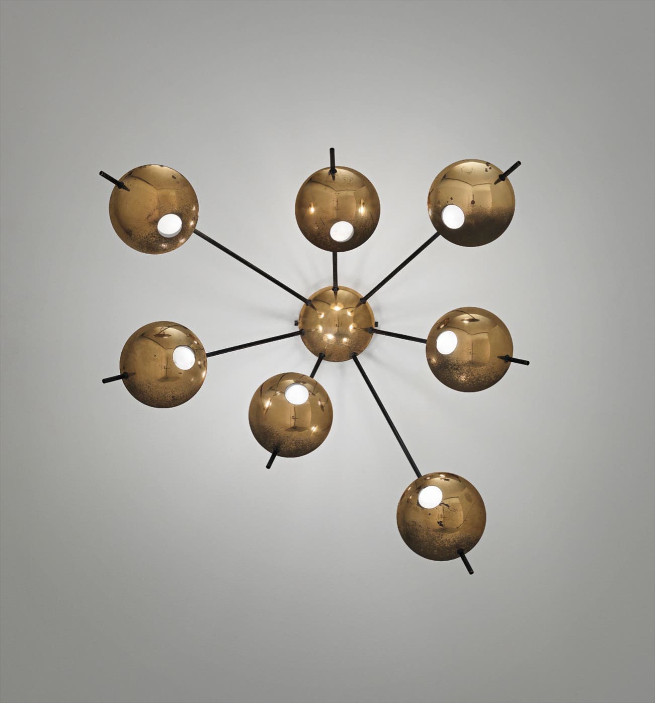 Manufactured by Stilnovo, Italy. Ceiling fixture with manufacturer's paper label MILANO/STILNOVO/ITALY.
