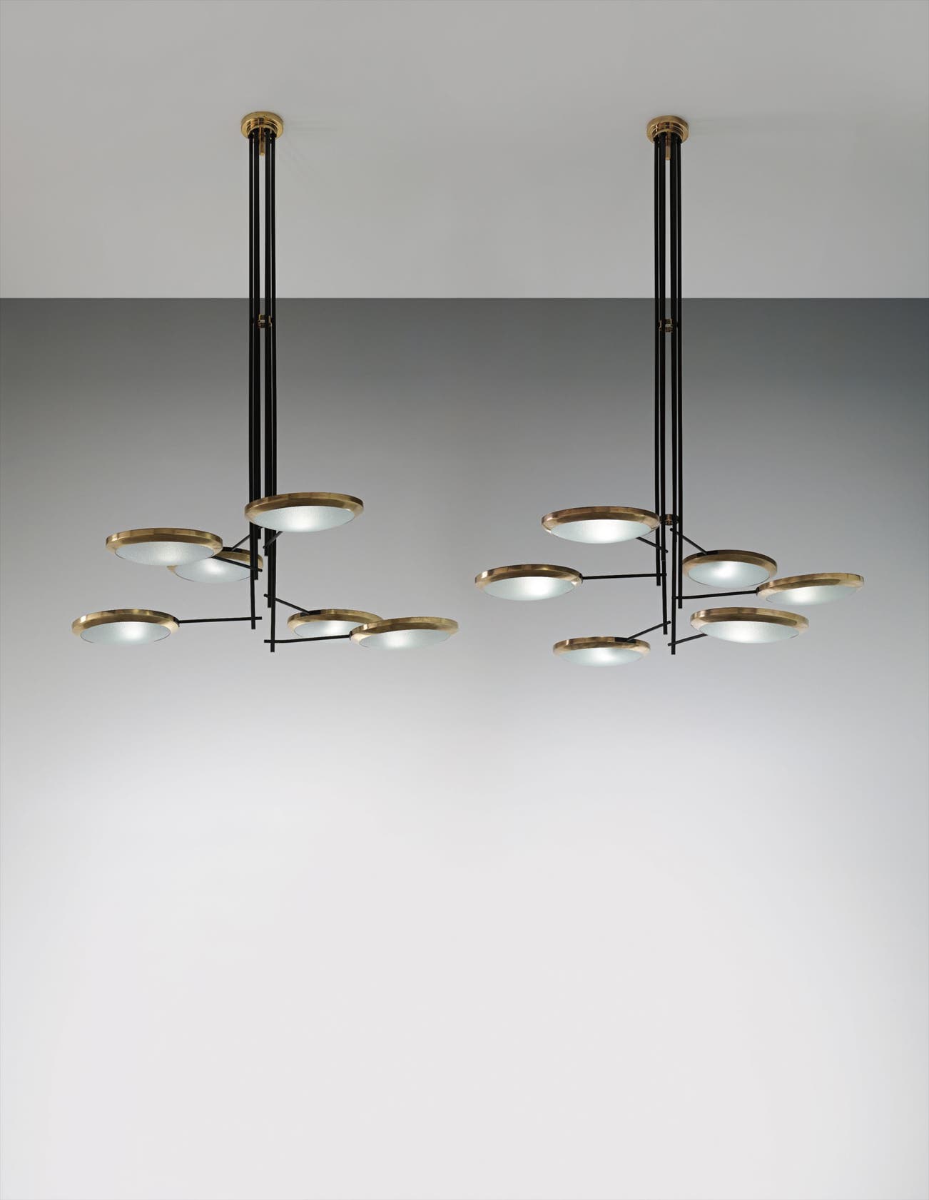 Pair of monumental chandeliers, designed for the Cartoleria Adua, Milan