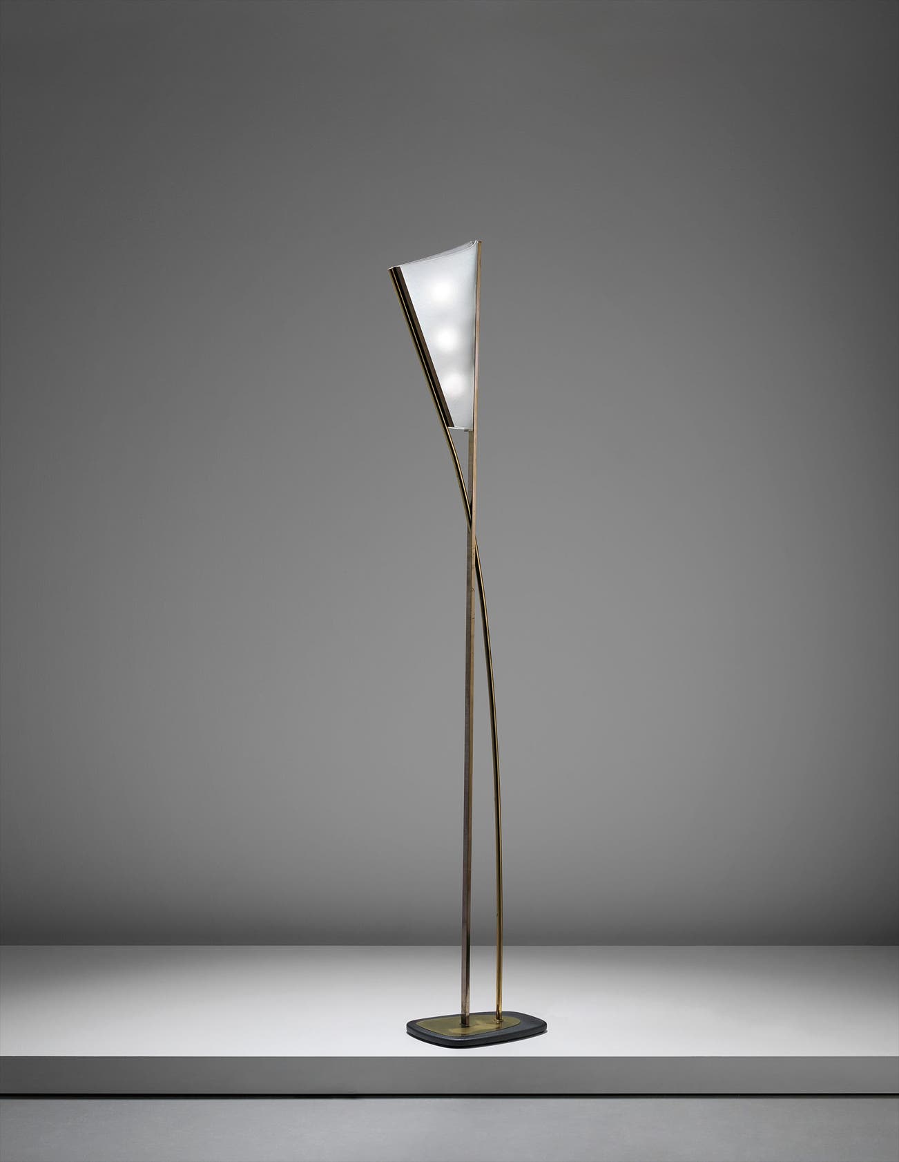 Frosted glass, brass, tubular brass, painted metal.