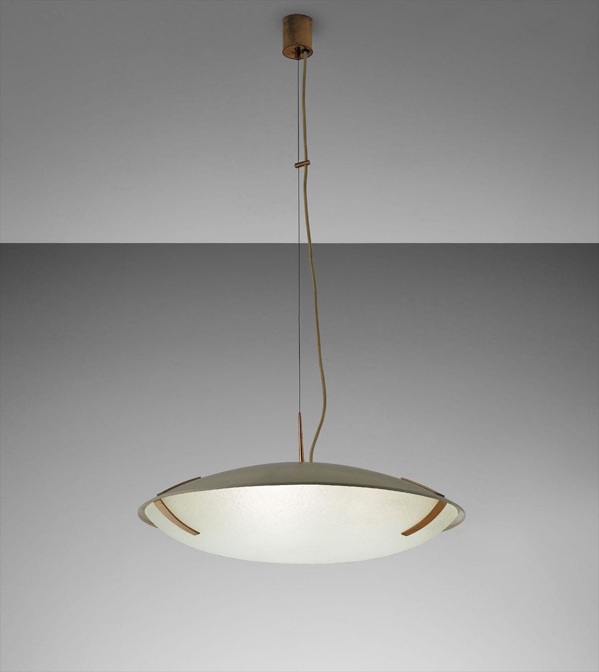 Textured glass, brass, painted metal.