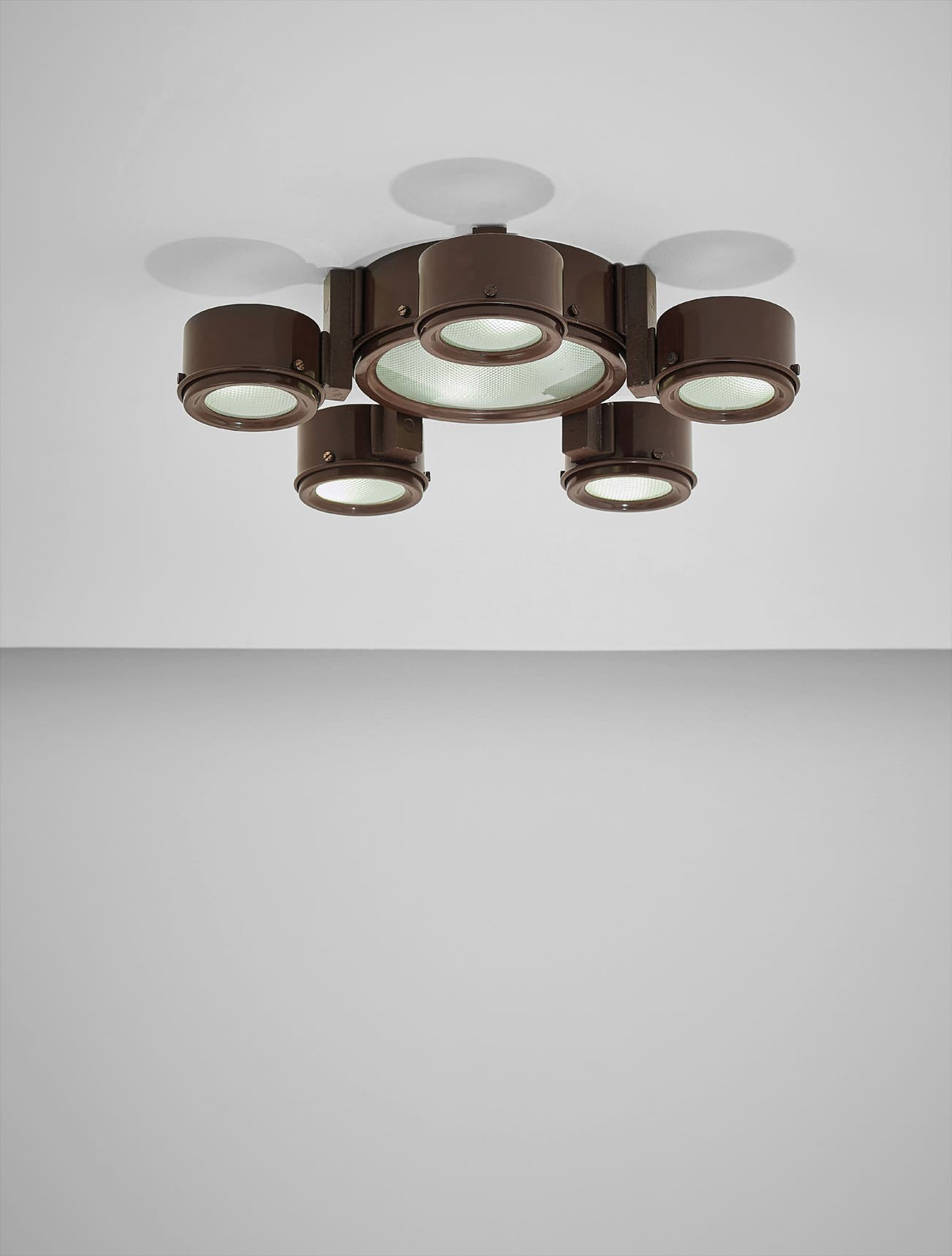 Rare ceiling light, model no. 2045, with one 3055/25 and five 3055/12 shades