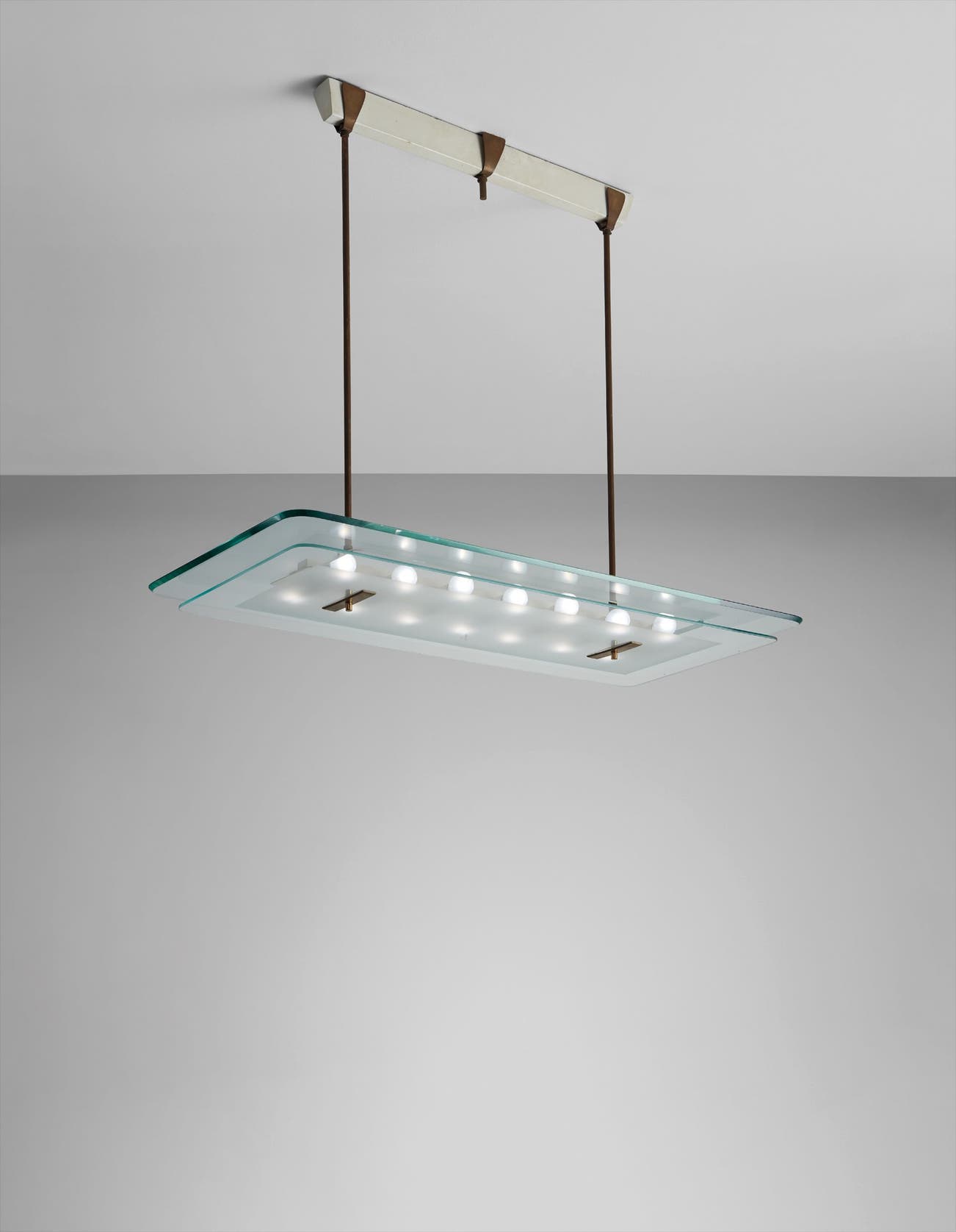 Glass, brass, painted metal, painted wood.