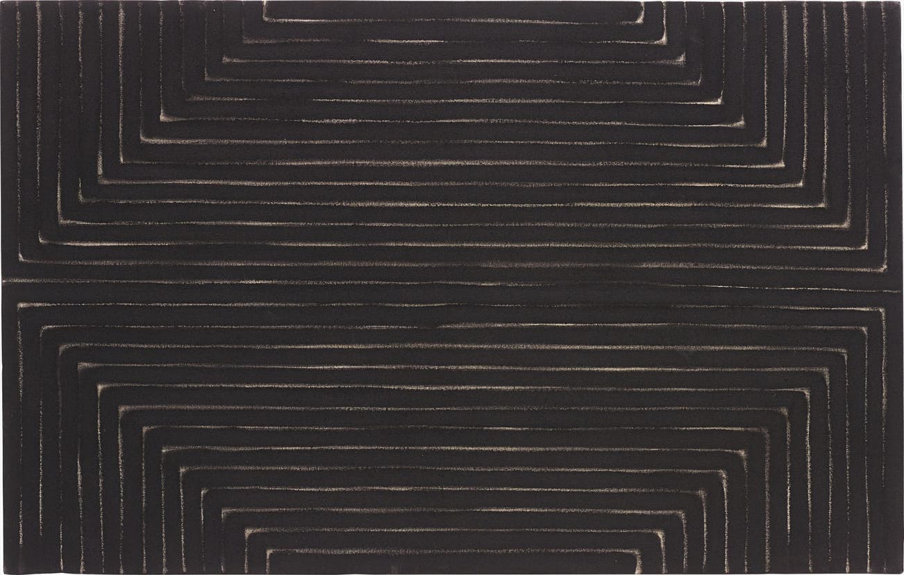 The present lot, Stella, Study for Bethlehem Hospital, 1990, is a repetition of Frank Stella’s black painting series from the late 1960s, which were executed and composed of black house paint on raw canvas. For Stella, the painstakingly rendered stripes hold no illusion of depth and emphasize the pure flatness of the object. Sturtevant has described Stella’s black paintings as “just incredible” and the present lot highlights the amazing skill and execution of her rendering. As we gaze upon the monochromatic splendor of the present lot, her repetition of this important moment of the late 1960s is beautifully revisited. For Sturtevant, the 1960’s was “the big bang of pop art. But pop only dealt with the surface, I started asking questions about what lay beneath the surface. What is the understructure of art? What is the silent power of art?” (Sturtevant in conversation with Peter Halley, index Magazine, September – October, 2005) Sturtevant’s interest in the “silent power” is the driving force behind her long and productive artistic career. Sturtevant is “somebody who basically adopts style as a medium, and in order to do that she assumed the guise of the artists around her. This is an incredibly powerful and threatening thing to take on.”(Peter Eleey in C. Bagley, “Sturtevant: Repeat Offender,” W Magazine, May 18, 2014)