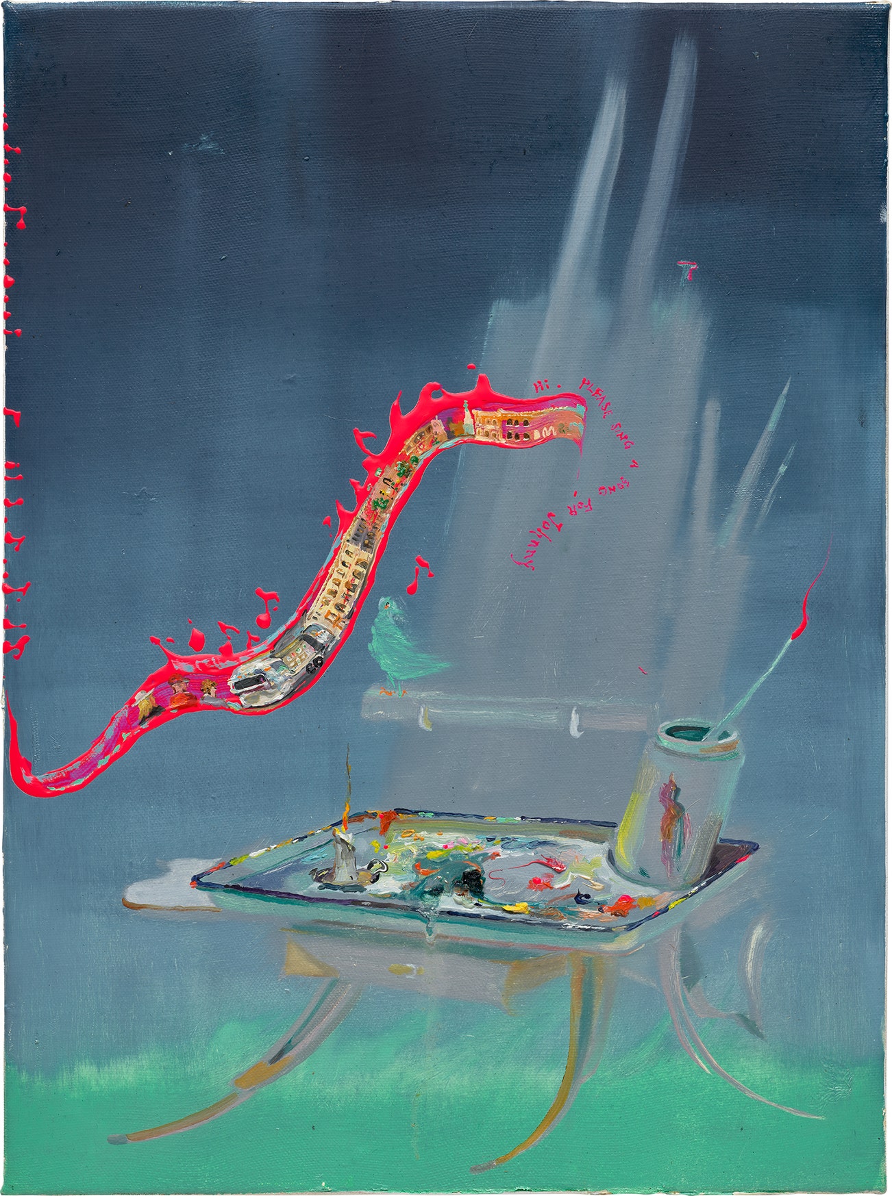 signed, titled, inscribed and dated ""PLEASE SING A SONG For Johnny" Su Su. 2021. NYC. The Guild of Adventure Painters. 09.12.2021" on the reverse