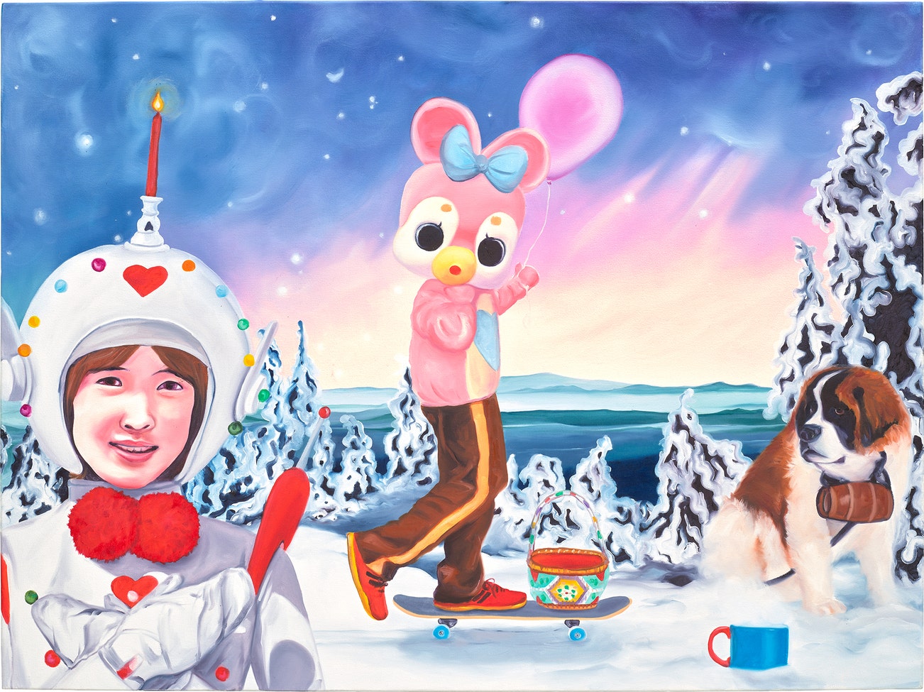 titled, inscribed and dated 'Little Pink Rabbit Hood London 2014' on the reverse