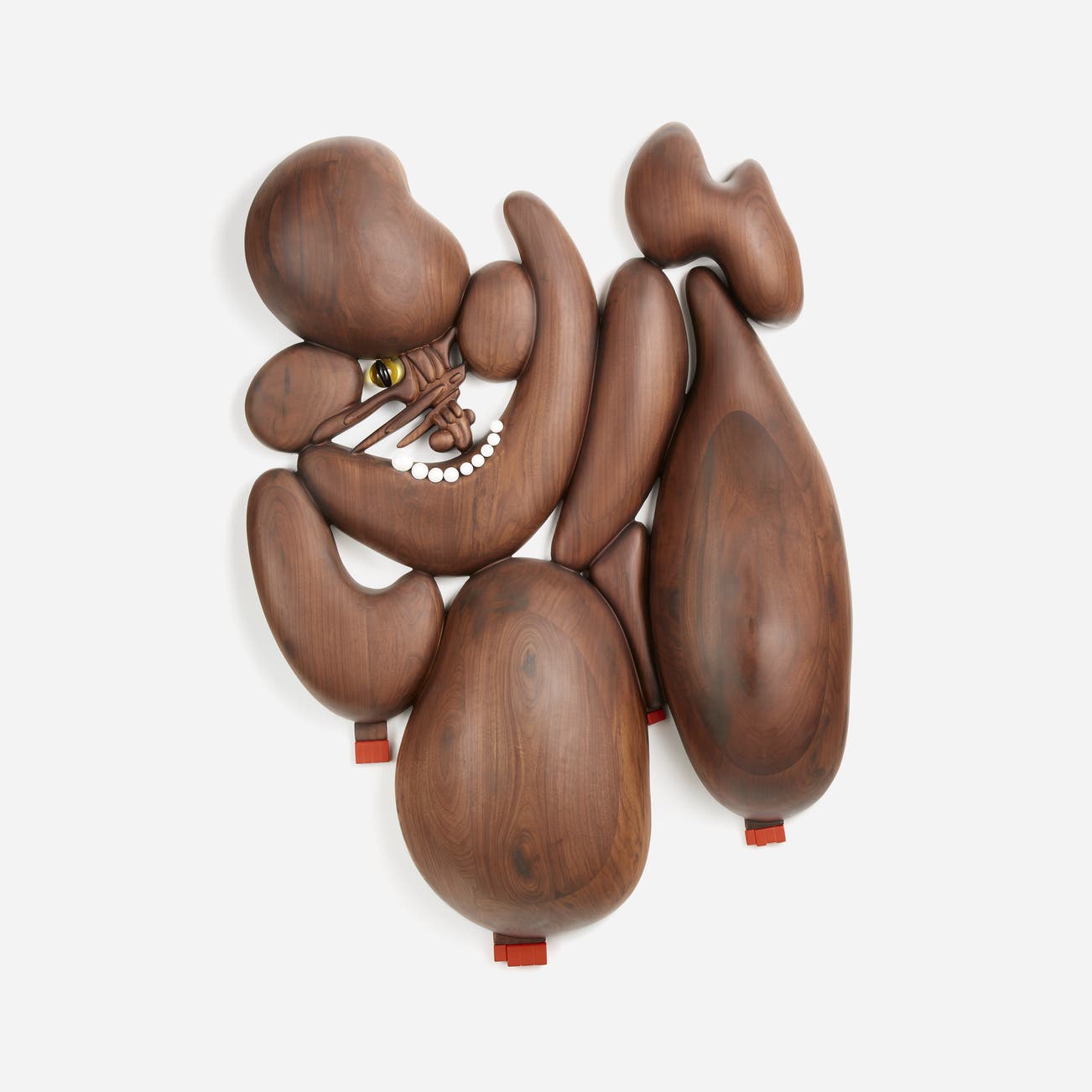 Polished walnut wood sculpture with glass and crystal resin details, contained in the original foam-lined wooden crate.