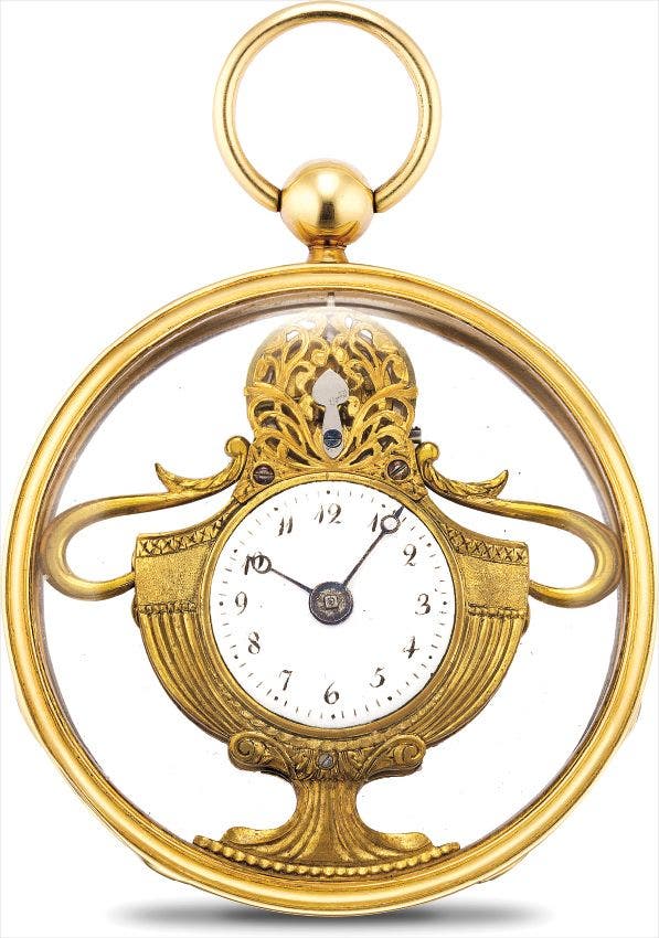 The present watch has been retained in incredibly crisp and original condition. It is highly unusual as the movement is made to form a vase.