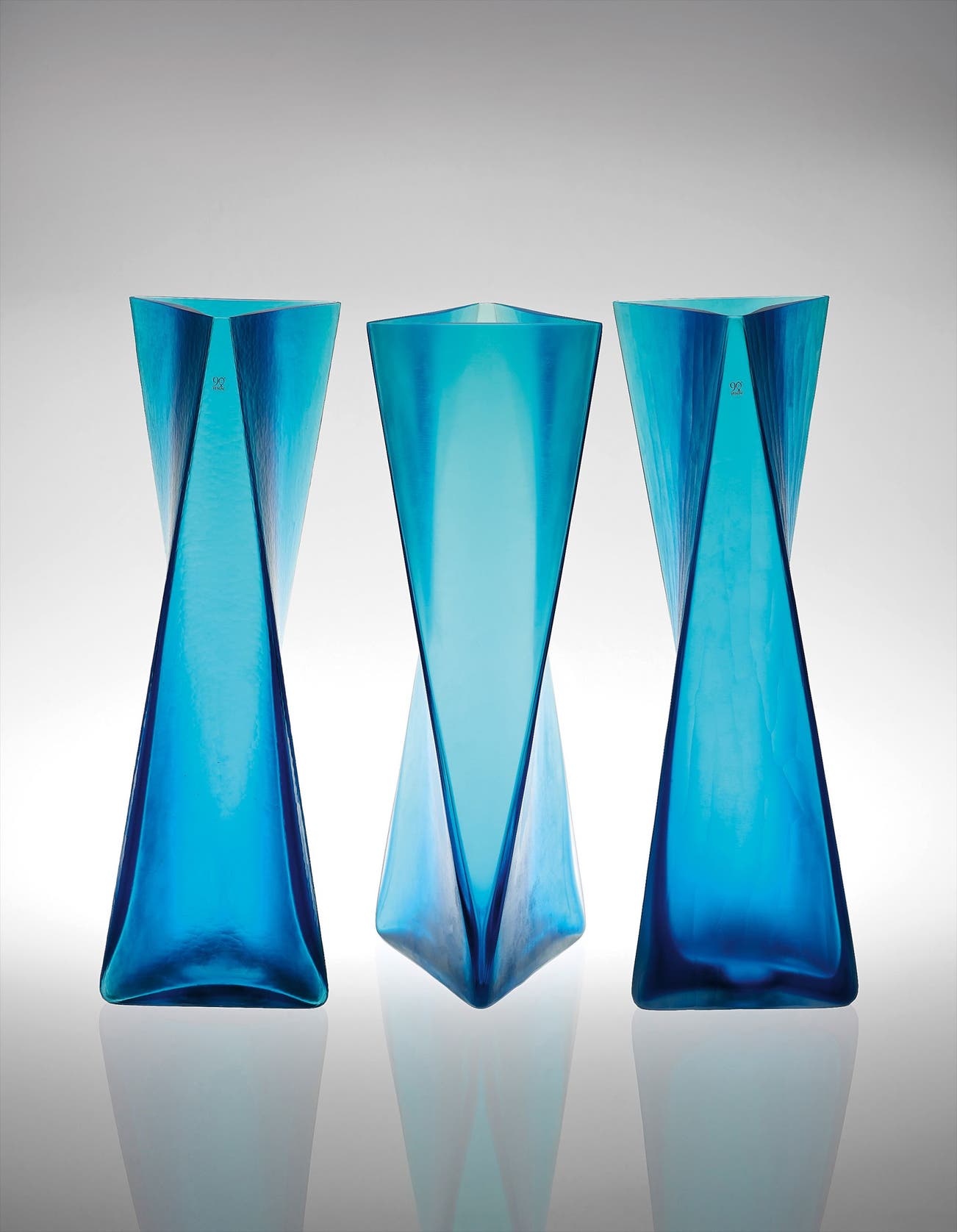 Produced by Venini, Murano, Italy. Number 3 from the edition of 30. Each with manufacturer's plastic label 90°/VENINI/1921 - 2011 and underside acid-etched with 90°/VENINI/2011/Ando, Venini 2011 – 3 / 30. Together with a certificate of authenticity from Venini.