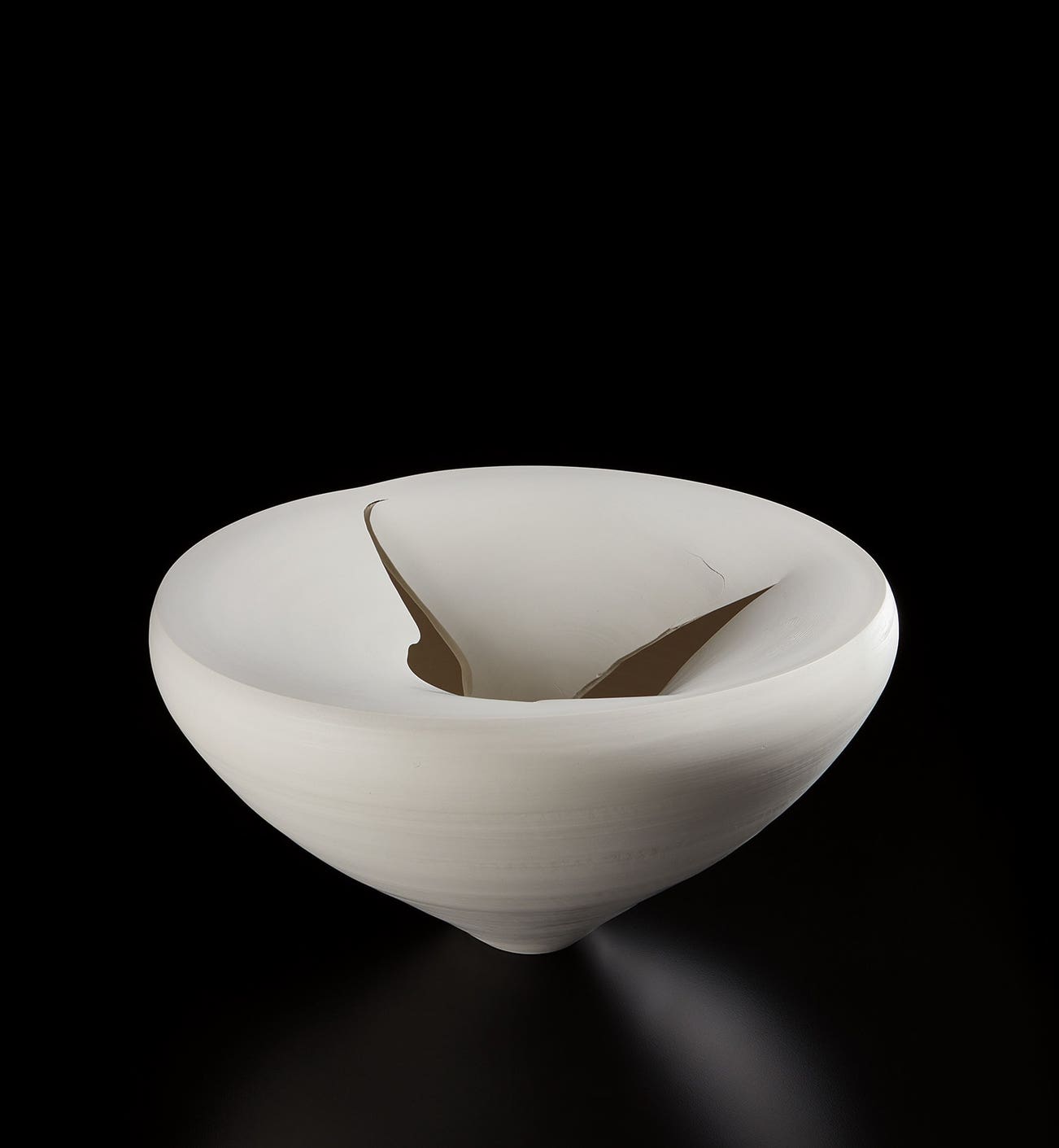 Impressed with artist's seal and incised Taizo. Underside with sticker, 30. Together with custom kiri wood box, inscribed in pencil with artist's name and date. Each box ink-stamped with artist's seal and 割台皿 (disc dish).
