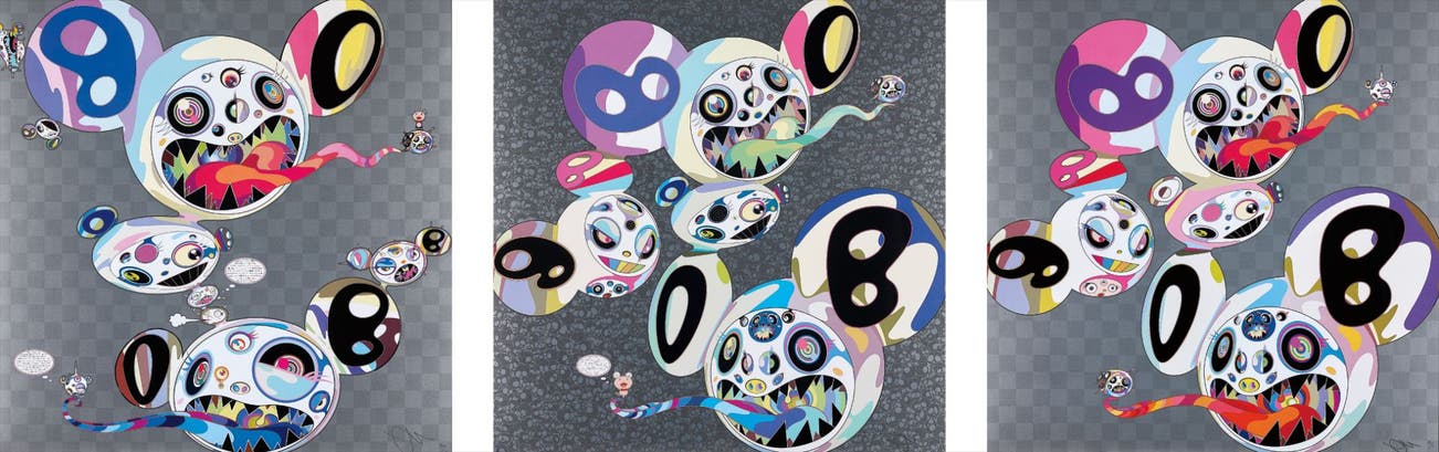In the 1990s, Murakami founded the Superflat movement in an attempt to expose the "shallow emptiness of Japanese consumer culture." The artist plays on the familiar aesthetic of mangas, Japanese-language comics, to render works that appear democratic and accessible, all the while denouncing the universality and unspecificity of consumer goods. True to form, Murakami has done collaborations with numerous brands and celebrities including Kanye West, Louis Vuitton, Pharrell Williams and Google.