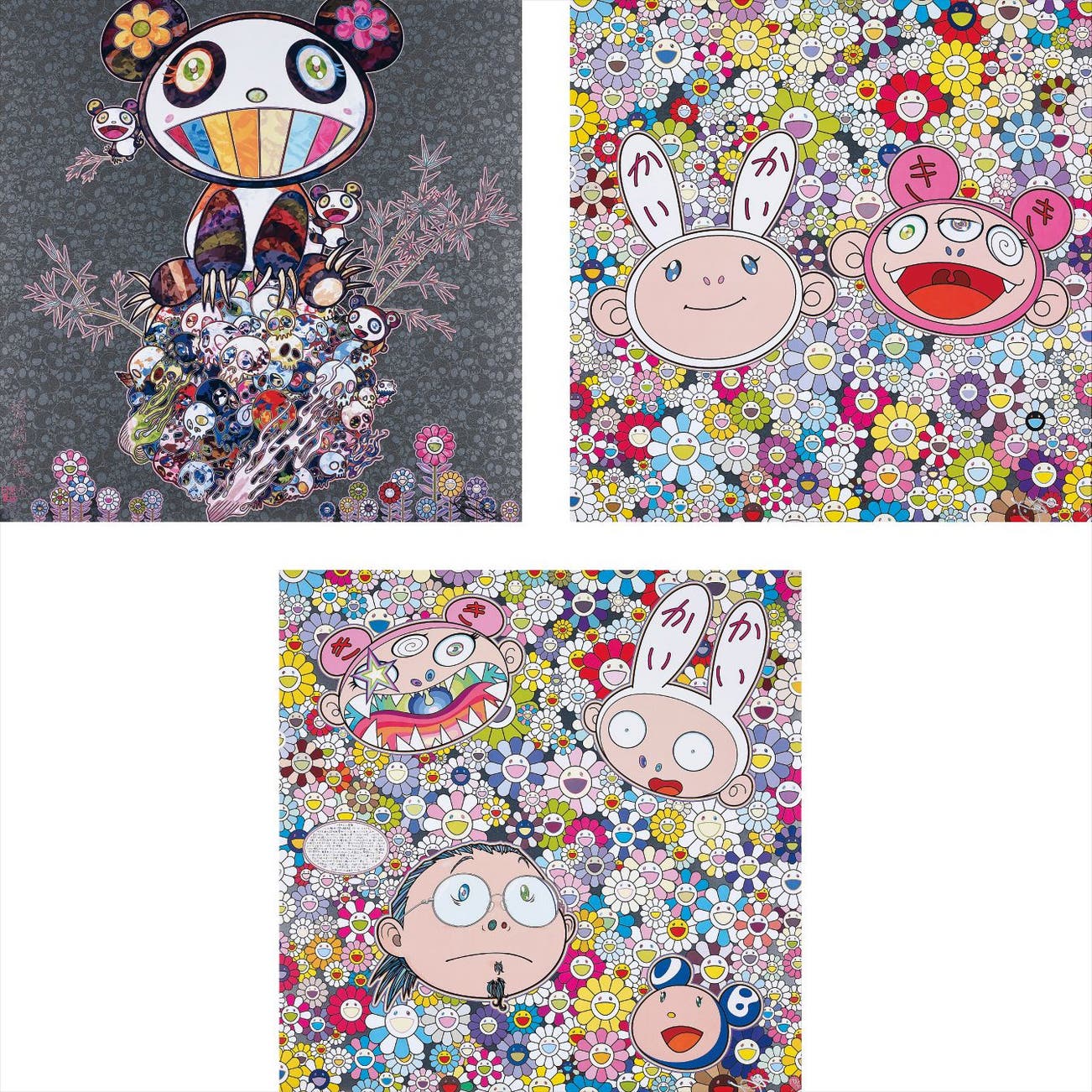 In the 1990s, Murakami founded the Superflat movement in an attempt to expose the "shallow emptiness of Japanese consumer culture." The artist plays on the familiar aesthetic of mangas, Japanese-language comics, to render works that appear democratic and accessible, all the while denouncing the universality and unspecificity of consumer goods. True to form, Murakami has done collaborations with numerous brands and celebrities including Kanye West, Louis Vuitton, Pharrell Williams and Google.