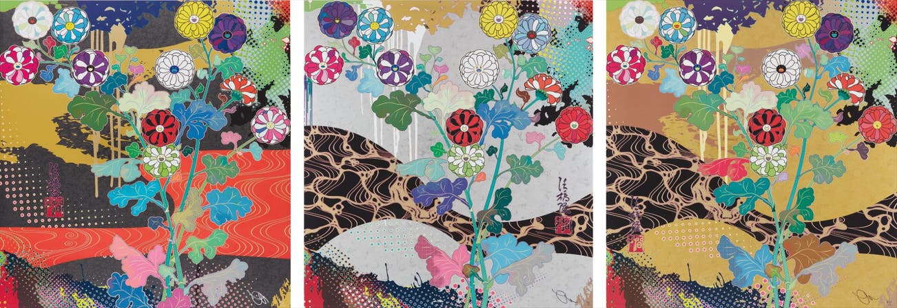 In the 1990s, Murakami founded the Superflat movement in an attempt to expose the "shallow emptiness of Japanese consumer culture." The artist plays on the familiar aesthetic of mangas, Japanese-language comics, to render works that appear democratic and accessible, all the while denouncing the universality and unspecificity of consumer goods. True to form, Murakami has done collaborations with numerous brands and celebrities including Kanye West, Louis Vuitton, Pharrell Williams and Google.