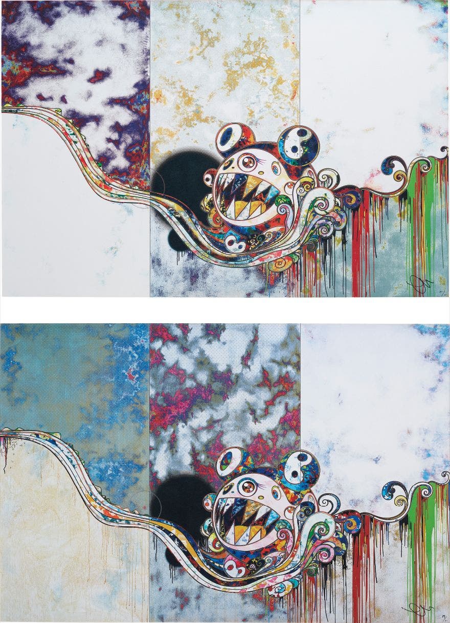 In the 1990s, Murakami founded the Superflat movement in an attempt to expose the "shallow emptiness of Japanese consumer culture." The artist plays on the familiar aesthetic of mangas, Japanese-language comics, to render works that appear democratic and accessible, all the while denouncing the universality and unspecificity of consumer goods. True to form, Murakami has done collaborations with numerous brands and celebrities including Kanye West, Louis Vuitton, Pharrell Williams and Google.