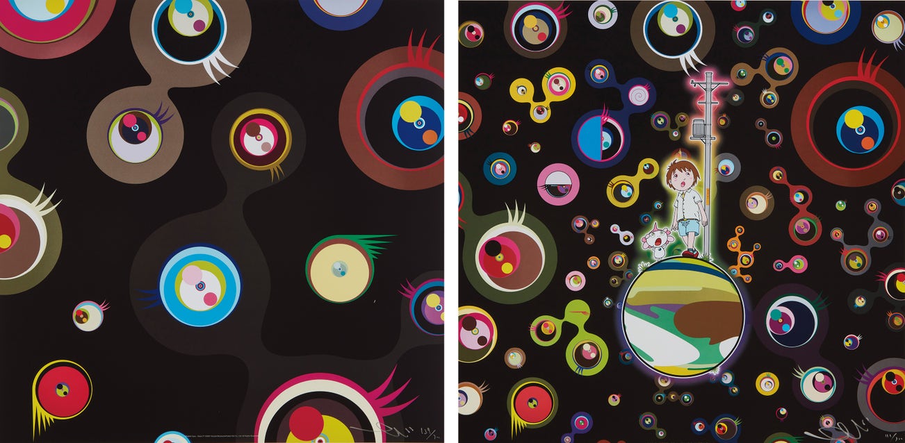 In the 1990s, Murakami founded the Superflat movement in an attempt to expose the "shallow emptiness of Japanese consumer culture." The artist plays on the familiar aesthetic of mangas, Japanese-language comics, to render works that appear democratic and accessible, all the while denouncing the universality and unspecificity of consumer goods. True to form, Murakami has done collaborations with numerous brands and celebrities including Kanye West, Louis Vuitton, Pharrell Williams and Google.