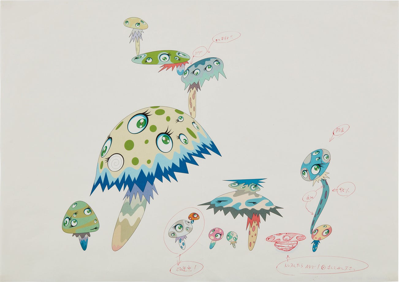 In the 1990s, Murakami founded the Superflat movement in an attempt to expose the "shallow emptiness of Japanese consumer culture." The artist plays on the familiar aesthetic of mangas, Japanese-language comics, to render works that appear democratic and accessible, all the while denouncing the universality and unspecificity of consumer goods. True to form, Murakami has done collaborations with numerous brands and celebrities including Kanye West, Louis Vuitton, Pharrell Williams and Google.
