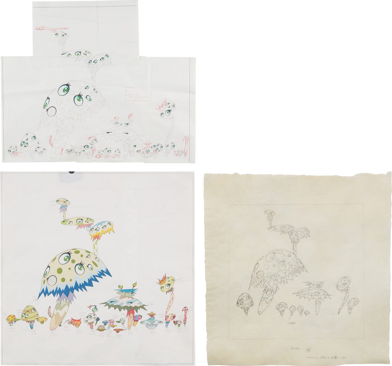In the 1990s, Murakami founded the Superflat movement in an attempt to expose the "shallow emptiness of Japanese consumer culture." The artist plays on the familiar aesthetic of mangas, Japanese-language comics, to render works that appear democratic and accessible, all the while denouncing the universality and unspecificity of consumer goods. True to form, Murakami has done collaborations with numerous brands and celebrities including Kanye West, Louis Vuitton, Pharrell Williams and Google.