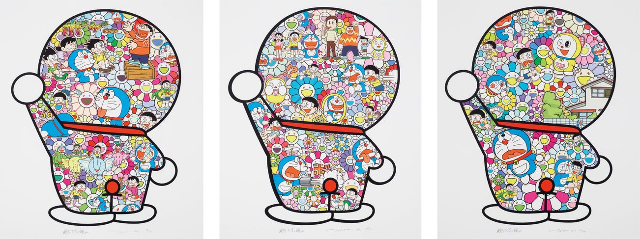 In the 1990s, Murakami founded the Superflat movement in an attempt to expose the "shallow emptiness of Japanese consumer culture." The artist plays on the familiar aesthetic of mangas, Japanese-language comics, to render works that appear democratic and accessible, all the while denouncing the universality and unspecificity of consumer goods. True to form, Murakami has done collaborations with numerous brands and celebrities including Kanye West, Louis Vuitton, Pharrell Williams and Google.
