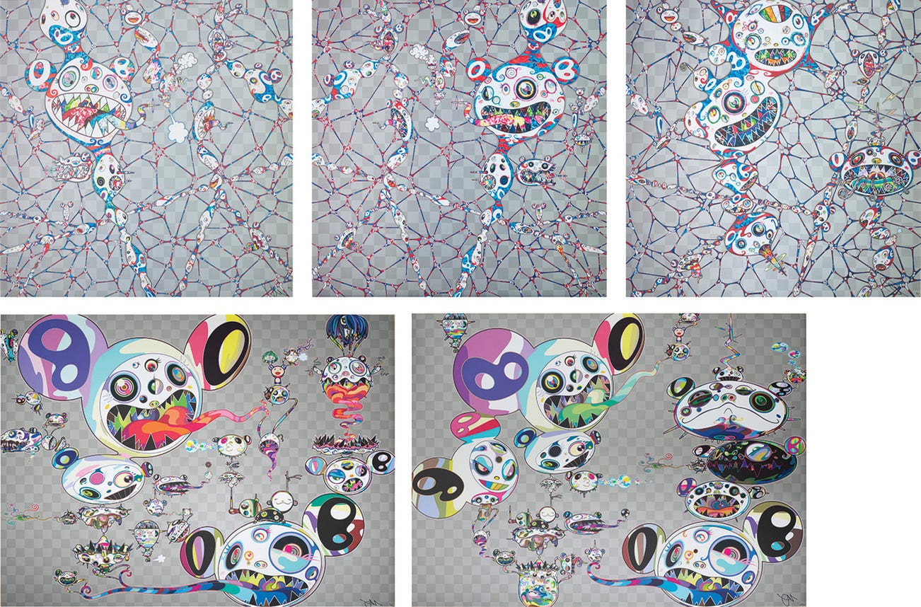 In the 1990s, Murakami founded the Superflat movement in an attempt to expose the "shallow emptiness of Japanese consumer culture." The artist plays on the familiar aesthetic of mangas, Japanese-language comics, to render works that appear democratic and accessible, all the while denouncing the universality and unspecificity of consumer goods. True to form, Murakami has done collaborations with numerous brands and celebrities including Kanye West, Louis Vuitton, Pharrell Williams and Google.