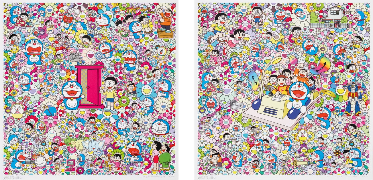 In the 1990s, Murakami founded the Superflat movement in an attempt to expose the "shallow emptiness of Japanese consumer culture." The artist plays on the familiar aesthetic of mangas, Japanese-language comics, to render works that appear democratic and accessible, all the while denouncing the universality and unspecificity of consumer goods. True to form, Murakami has done collaborations with numerous brands and celebrities including Kanye West, Louis Vuitton, Pharrell Williams and Google.