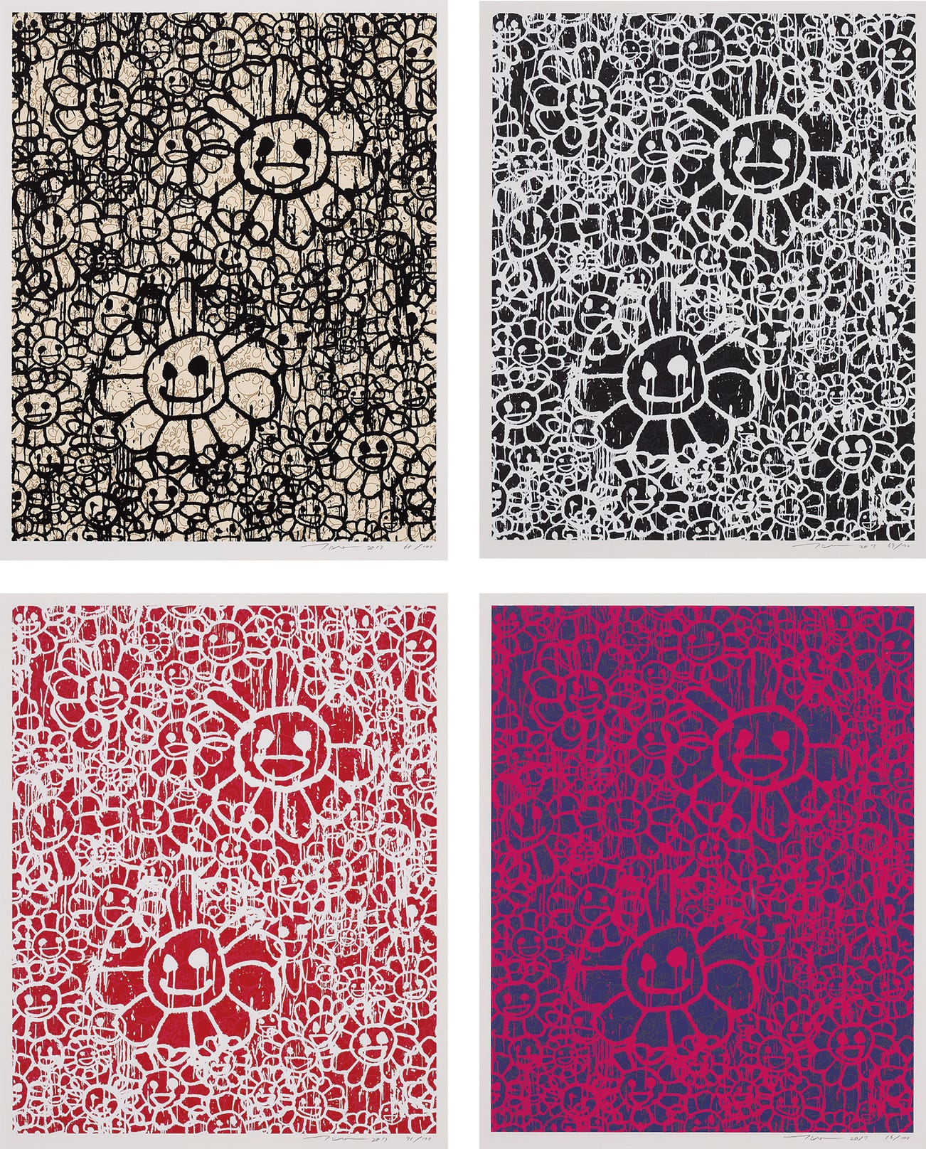 In the 1990s, Murakami founded the Superflat movement in an attempt to expose the "shallow emptiness of Japanese consumer culture." The artist plays on the familiar aesthetic of mangas, Japanese-language comics, to render works that appear democratic and accessible, all the while denouncing the universality and unspecificity of consumer goods. True to form, Murakami has done collaborations with numerous brands and celebrities including Kanye West, Louis Vuitton, Pharrell Williams and Google.