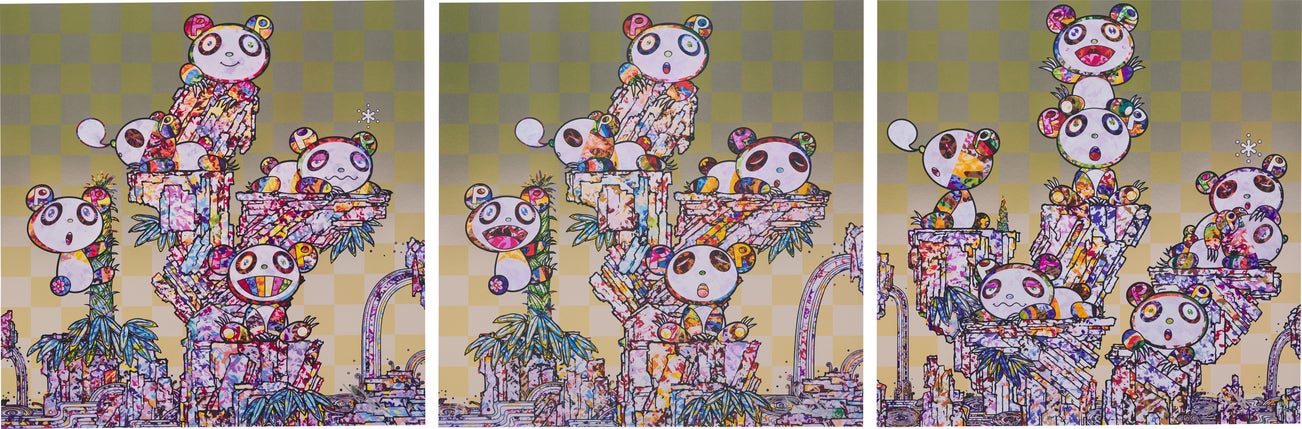 (ii) signed with the artist's initials and numbered 'TM 38/300' lower right; printed with artist's copyright and titled '"Pandas Panda Cubs Pandas" ©2019 Takashi Murakami/Kaikai Kiki Co., Ltd. All Rights Reserved.' along the bottom edge