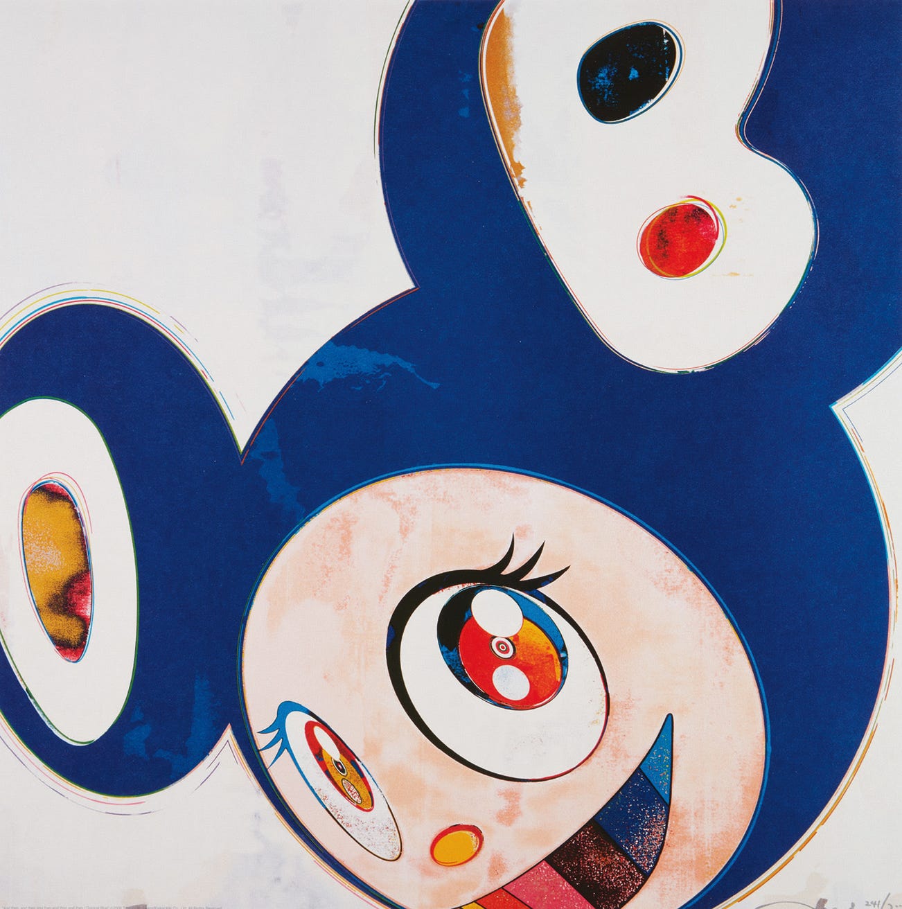 In the 1990s, Murakami founded the Superflat movement in an attempt to expose the "shallow emptiness of Japanese consumer culture." The artist plays on the familiar aesthetic of mangas, Japanese-language comics, to render works that appear democratic and accessible, all the while denouncing the universality and unspecificity of consumer goods. True to form, Murakami has done collaborations with numerous brands and celebrities including Kanye West, Louis Vuitton, Pharrell Williams and Google.