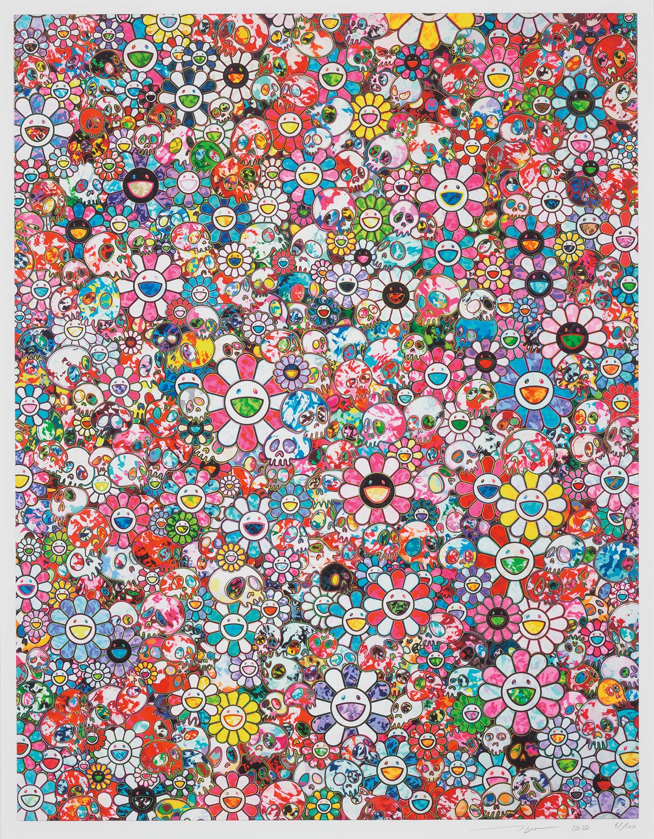In the 1990s, Murakami founded the Superflat movement in an attempt to expose the "shallow emptiness of Japanese consumer culture." The artist plays on the familiar aesthetic of mangas, Japanese-language comics, to render works that appear democratic and accessible, all the while denouncing the universality and unspecificity of consumer goods. True to form, Murakami has done collaborations with numerous brands and celebrities including Kanye West, Louis Vuitton, Pharrell Williams and Google.
