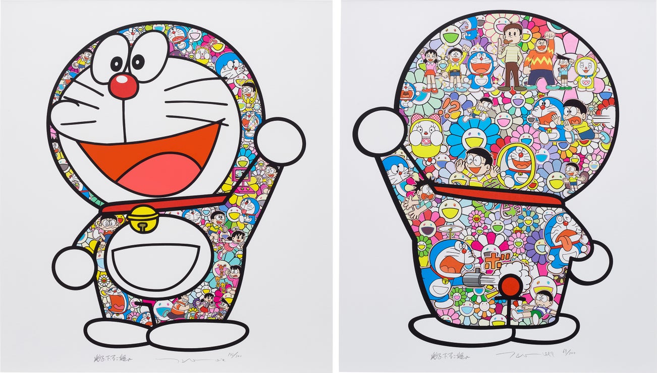 Two works: (i) Doraemon: Hip Hip Hurrah!; (ii) Mr Fujiko, F. Fujio and Doraemon Are in The Field of Flowers