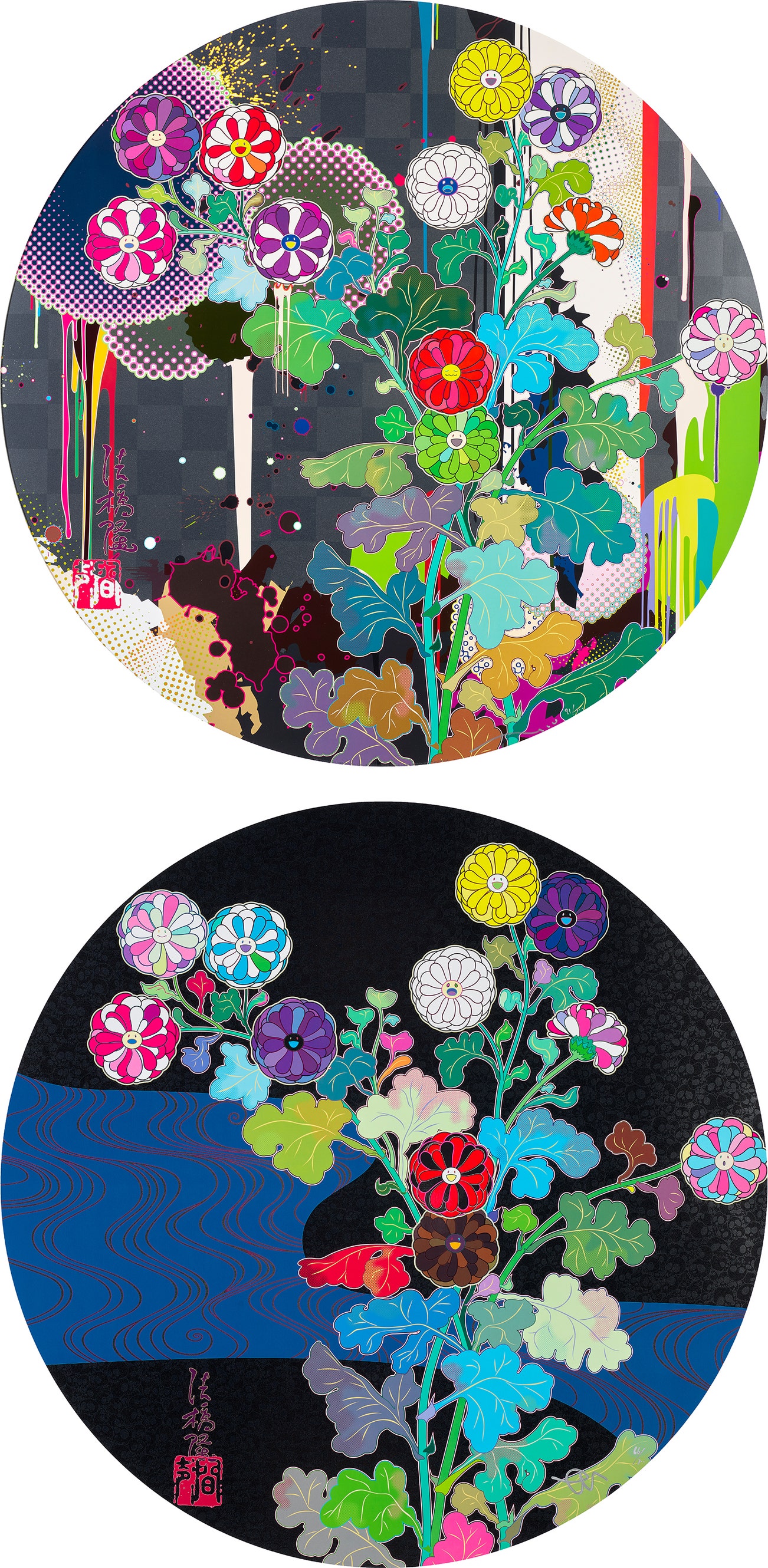 In the 1990s, Murakami founded the Superflat movement in an attempt to expose the "shallow emptiness of Japanese consumer culture." The artist plays on the familiar aesthetic of mangas, Japanese-language comics, to render works that appear democratic and accessible, all the while denouncing the universality and unspecificity of consumer goods. True to form, Murakami has done collaborations with numerous brands and celebrities including Kanye West, Louis Vuitton, Pharrell Williams and Google.