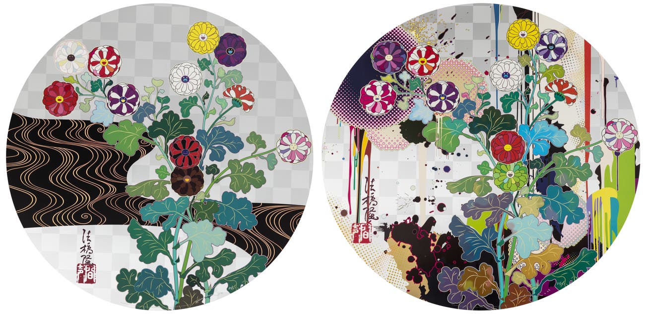 In the 1990s, Murakami founded the Superflat movement in an attempt to expose the "shallow emptiness of Japanese consumer culture." The artist plays on the familiar aesthetic of mangas, Japanese-language comics, to render works that appear democratic and accessible, all the while denouncing the universality and unspecificity of consumer goods. True to form, Murakami has done collaborations with numerous brands and celebrities including Kanye West, Louis Vuitton, Pharrell Williams and Google.