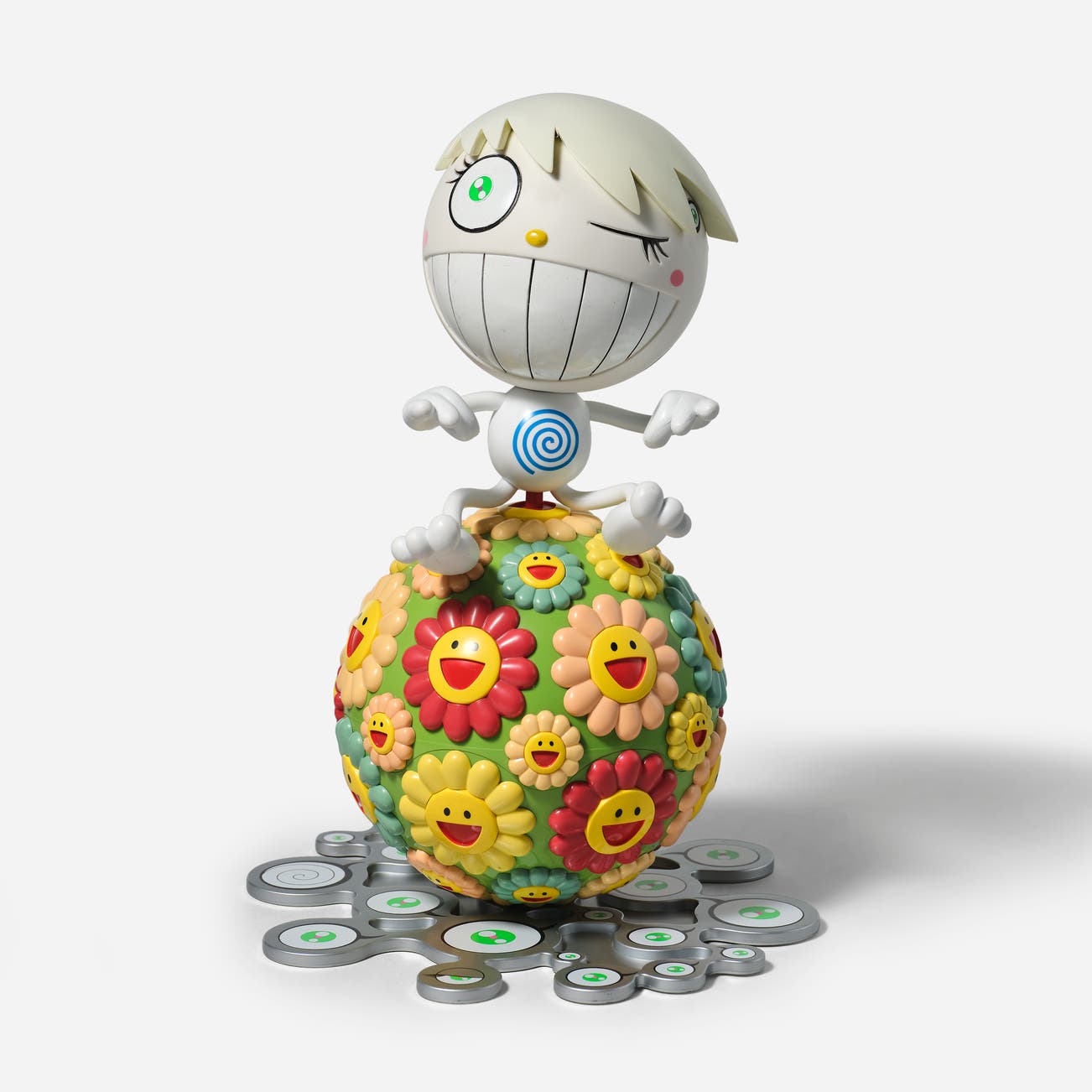 In the 1990s, Murakami founded the Superflat movement in an attempt to expose the "shallow emptiness of Japanese consumer culture." The artist plays on the familiar aesthetic of mangas, Japanese-language comics, to render works that appear democratic and accessible, all the while denouncing the universality and unspecificity of consumer goods. True to form, Murakami has done collaborations with numerous brands and celebrities including Kanye West, Louis Vuitton, Pharrell Williams and Google.
