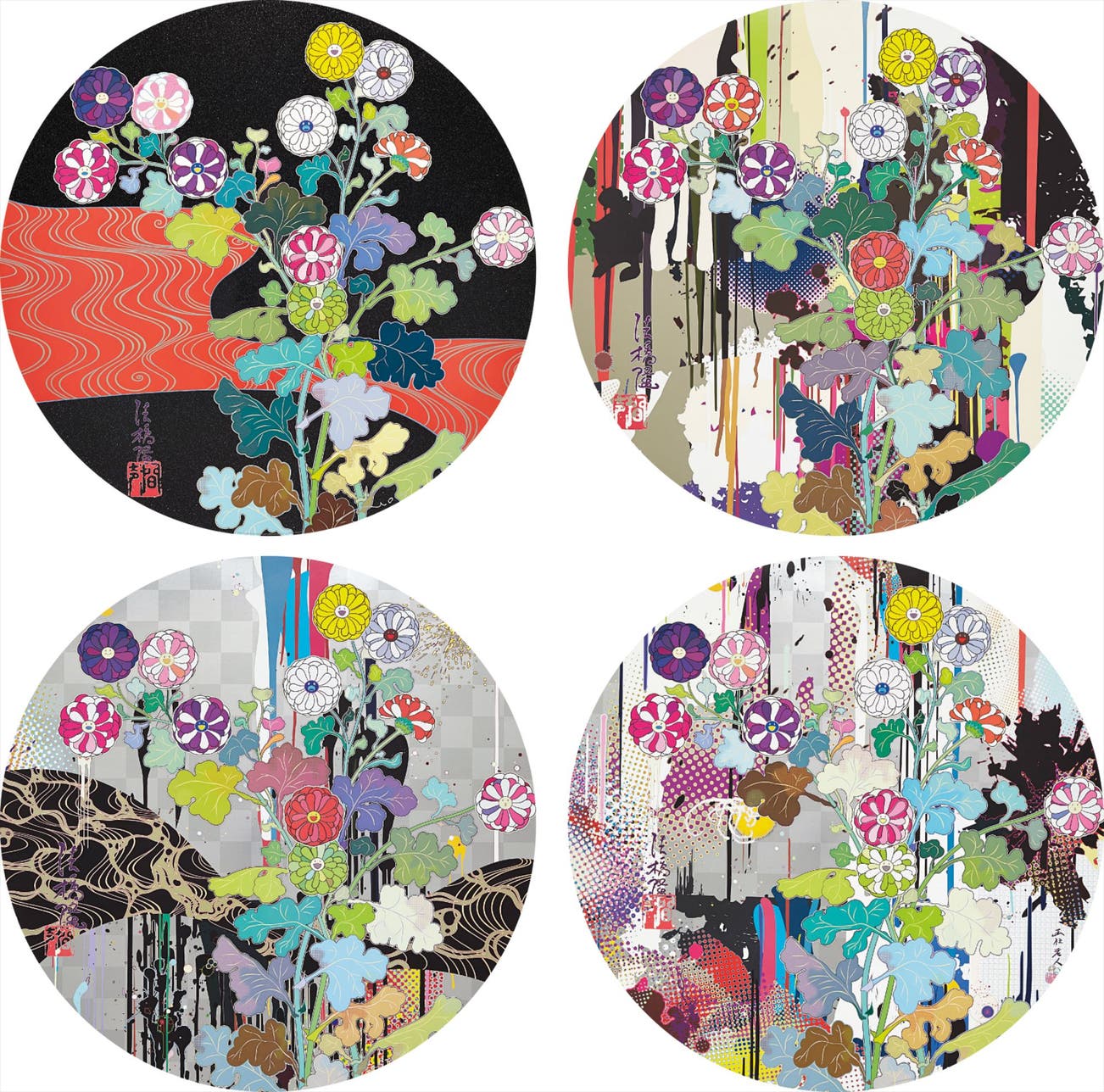 Kansei Kõrin Red Stream; I Recall The Time When My Feet Lifted Off the Ground, Every So Slightly - Kōrin - Chrysanthemum; Kansei: Like The River's Flow; and Kansei: Abstraction