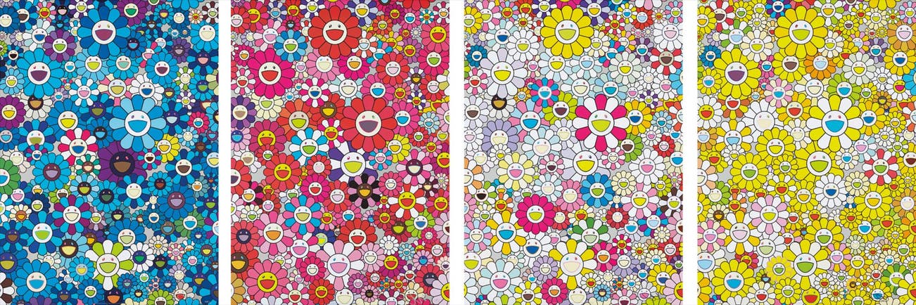 In the 1990s, Murakami founded the Superflat movement in an attempt to expose the "shallow emptiness of Japanese consumer culture." The artist plays on the familiar aesthetic of mangas, Japanese-language comics, to render works that appear democratic and accessible, all the while denouncing the universality and unspecificity of consumer goods. True to form, Murakami has done collaborations with numerous brands and celebrities including Kanye West, Louis Vuitton, Pharrell Williams and Google.